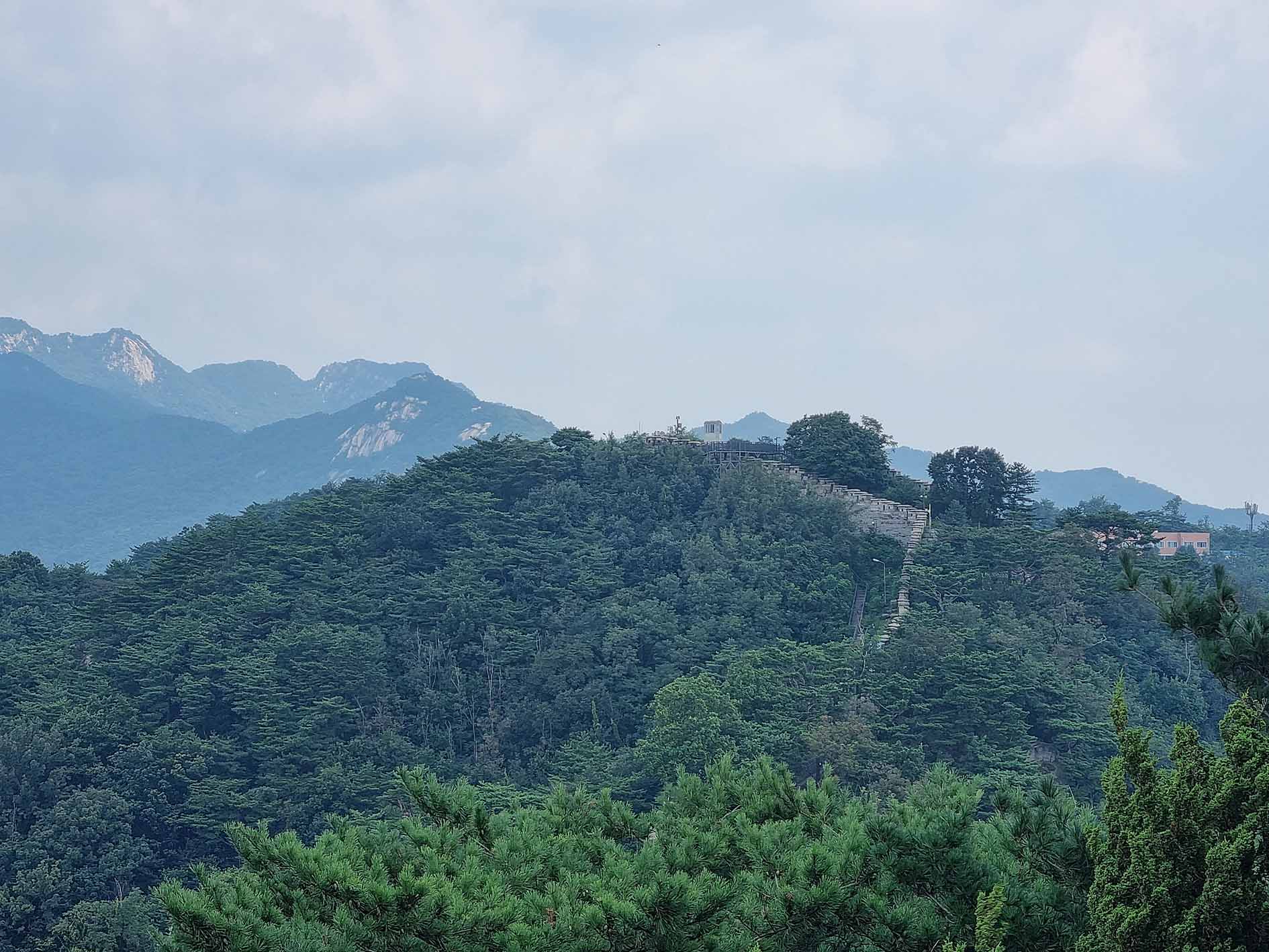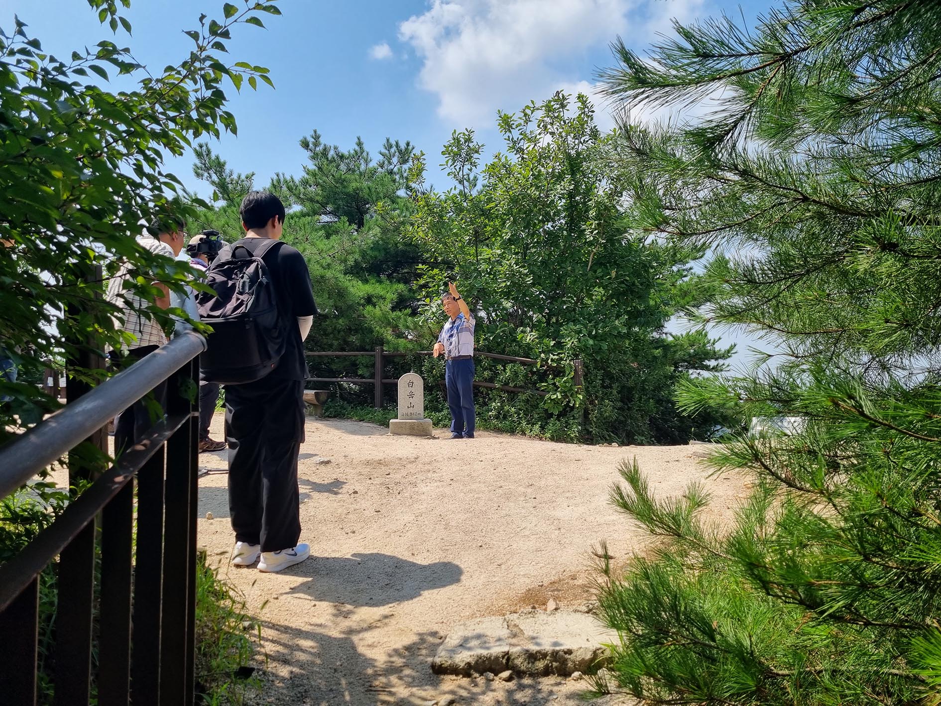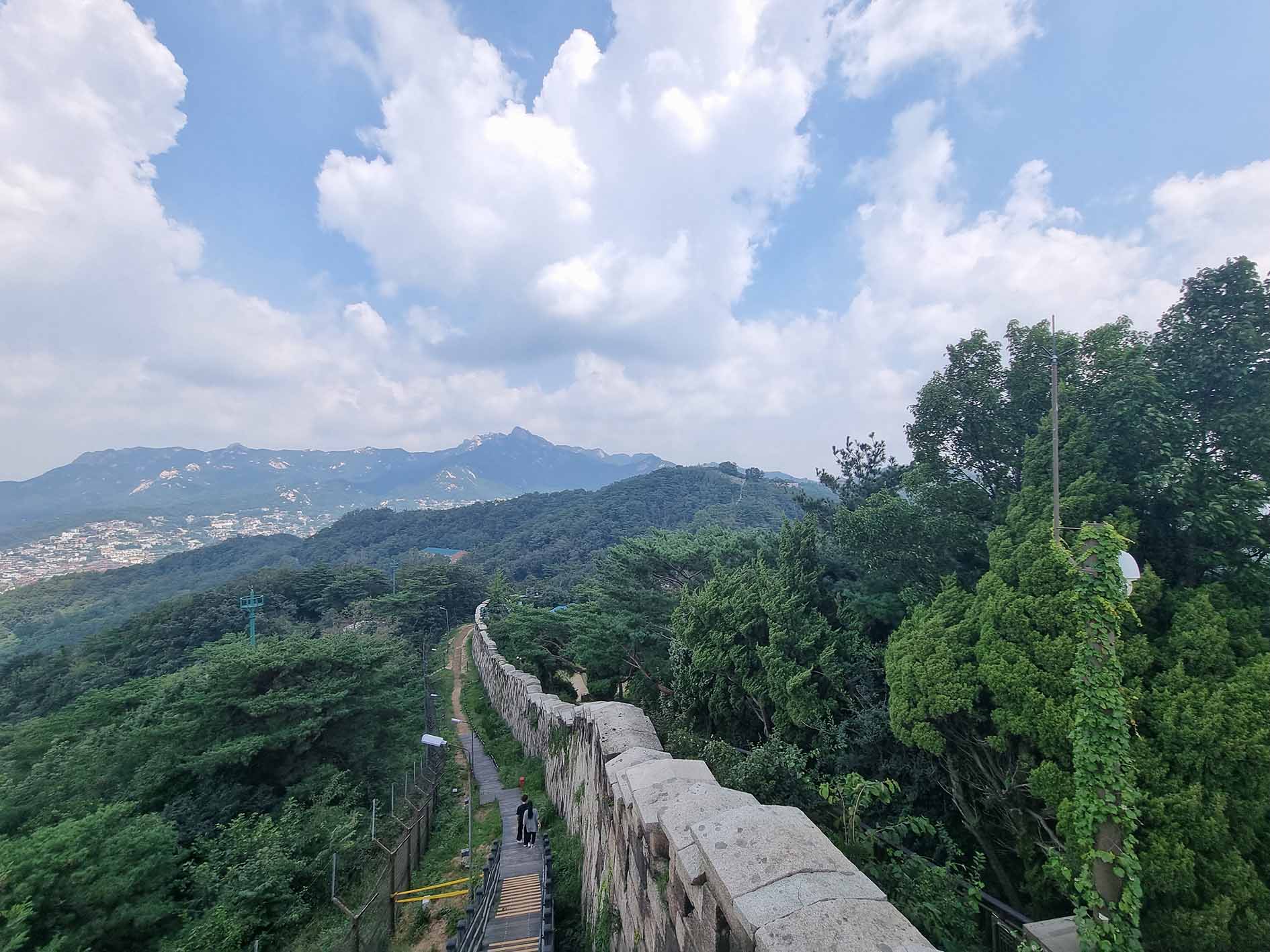 정상부에는 역사탐방 한양도성 촬영 중이다.