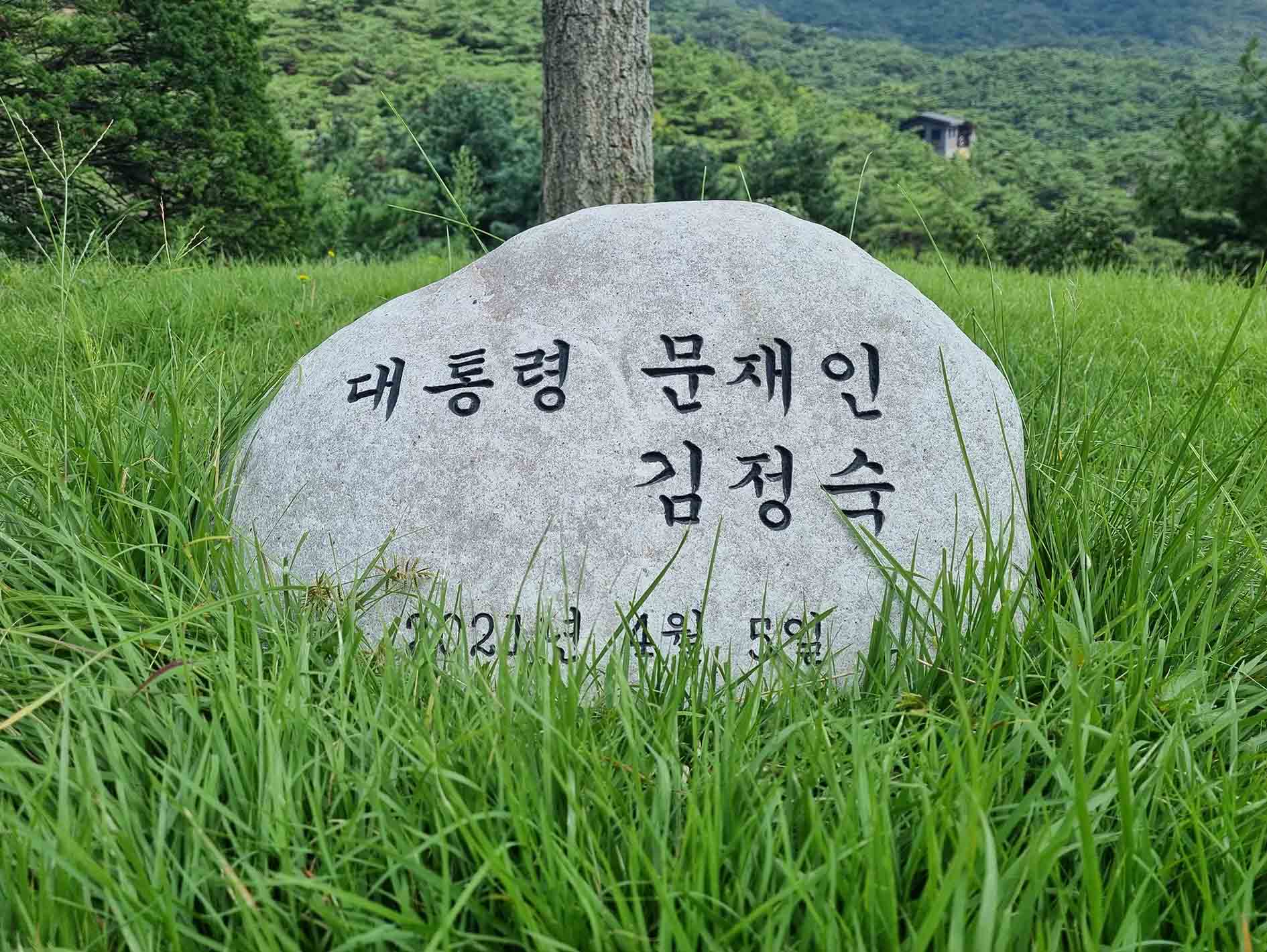 좌측의 나무는 노무현 대통령께서 심으셨던 서어나무(2004. 5.16)이고,