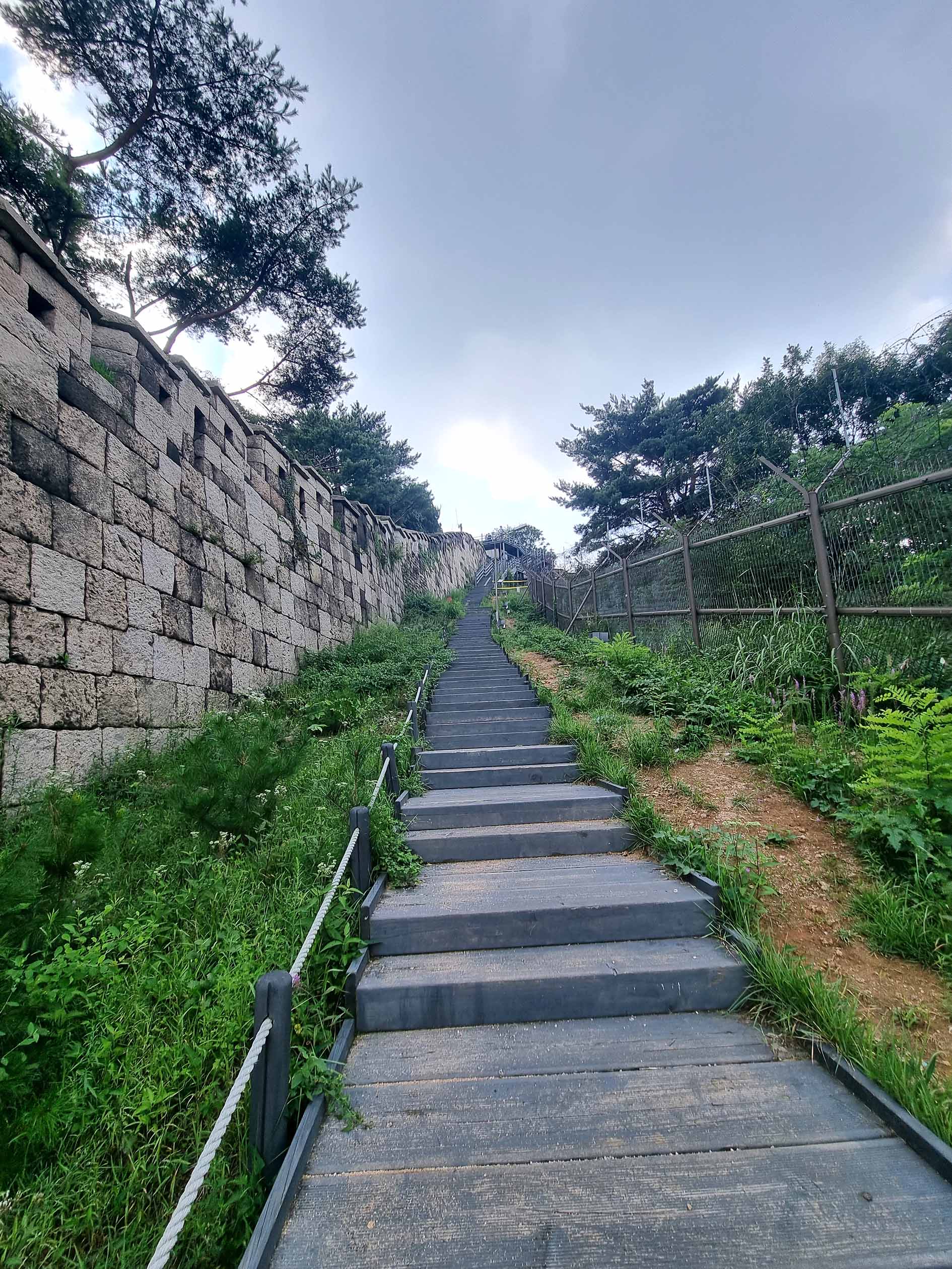 계단을 올라 등산로는 우측으로 일방통행길이다.