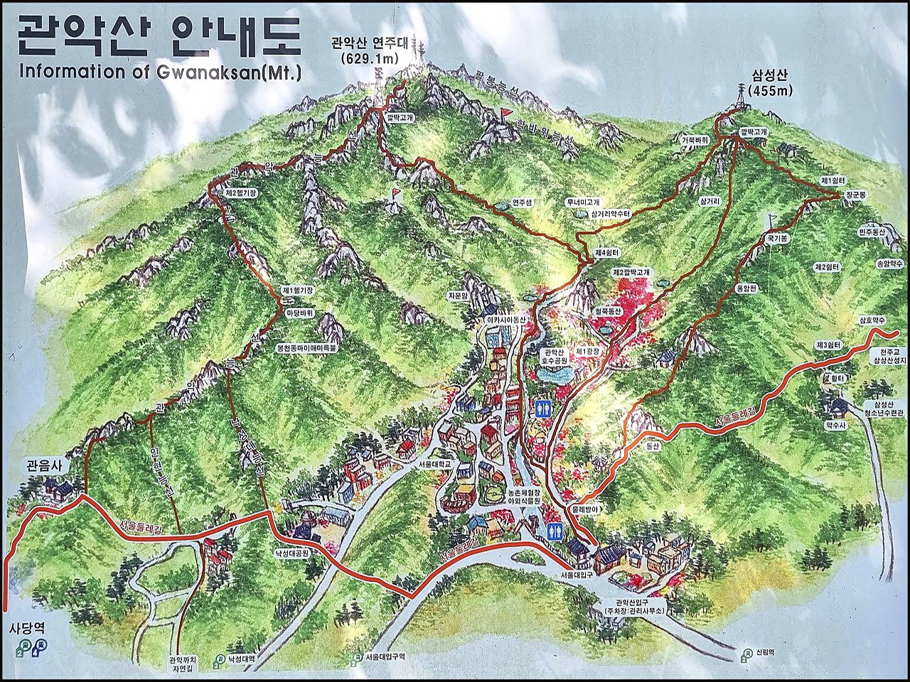 1, 사당역-관음사-국기봉-마당바위-관악문-연주대(4.5km 2시간)