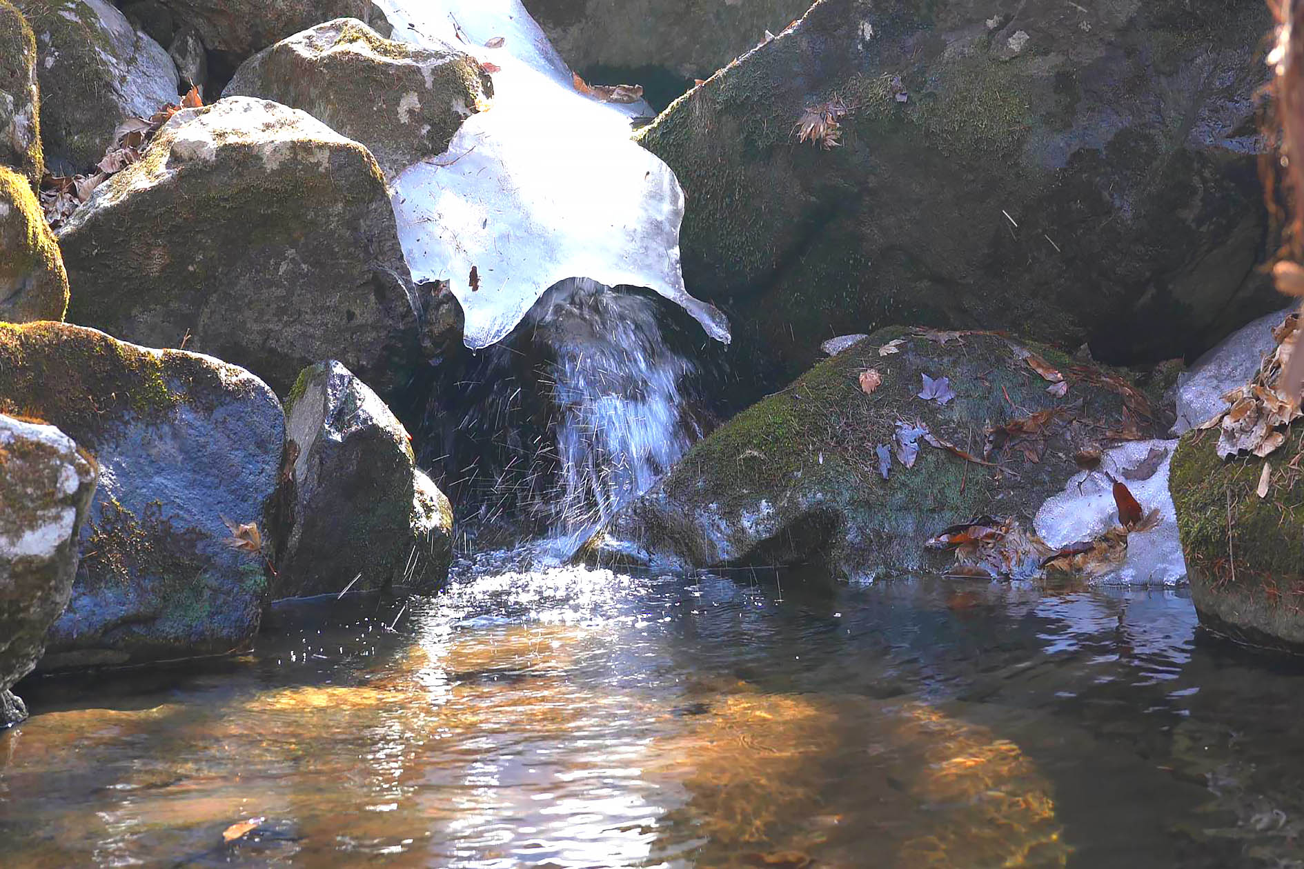 얼음장 밑으로는 맑고 경쾌한 소리와 함께 물 흐르는 소리가 들려오고