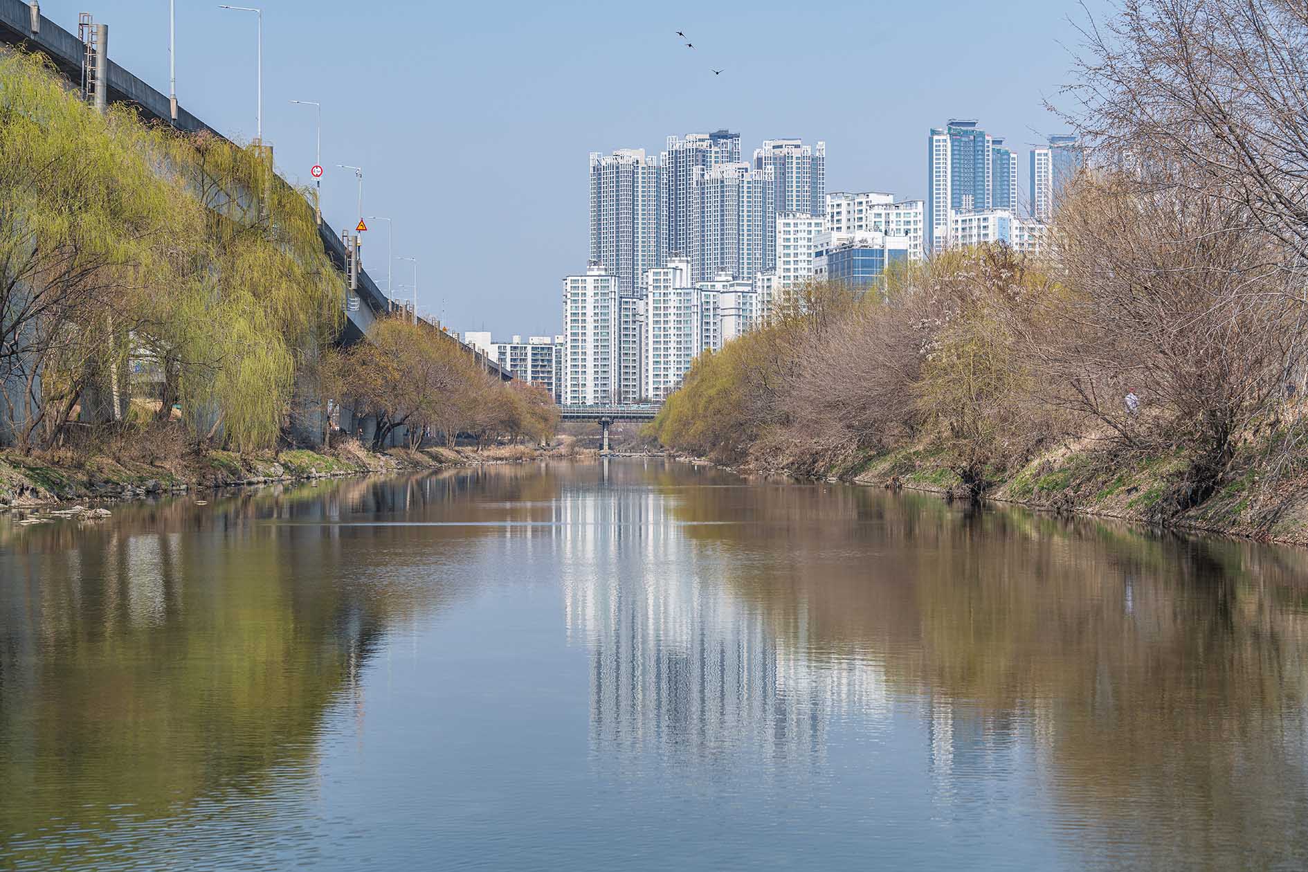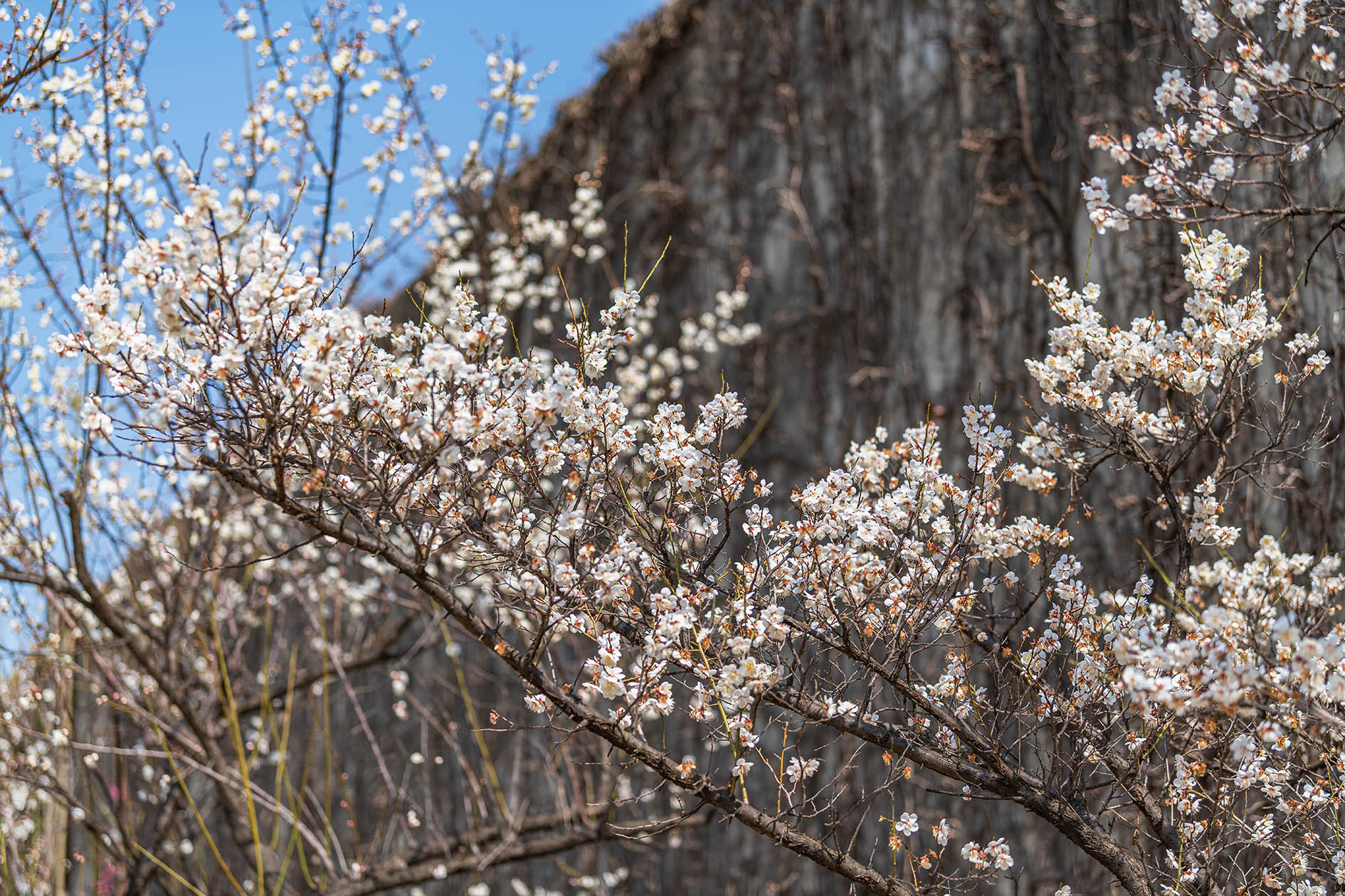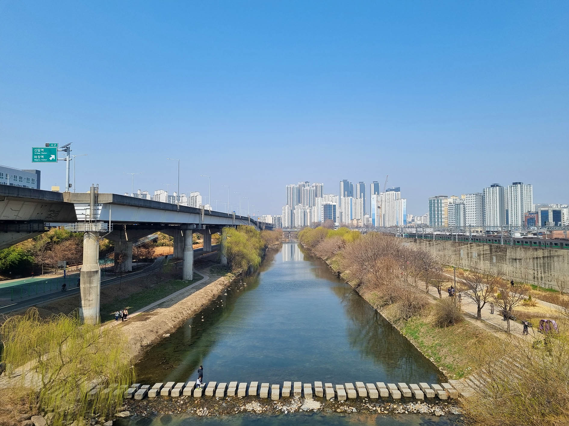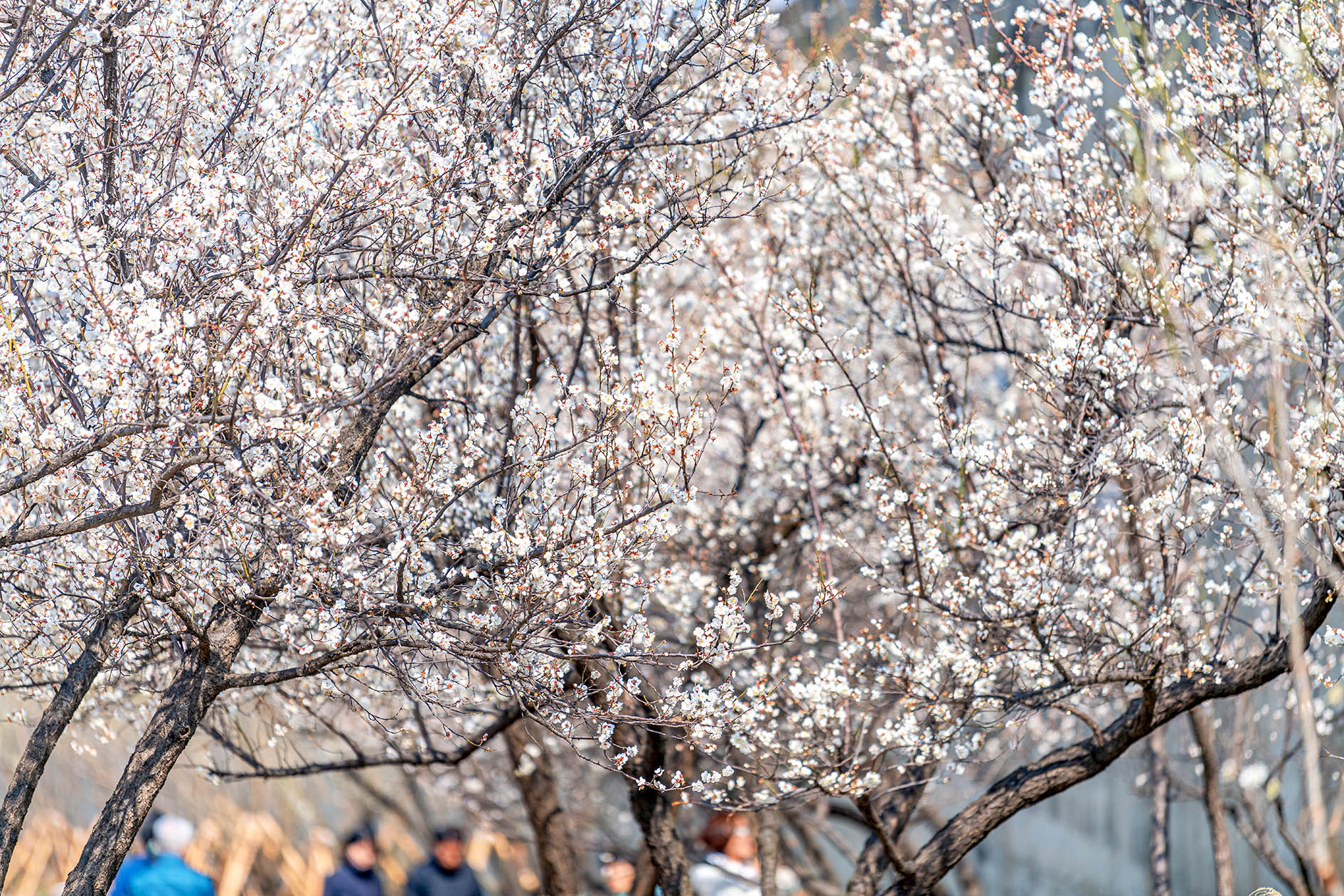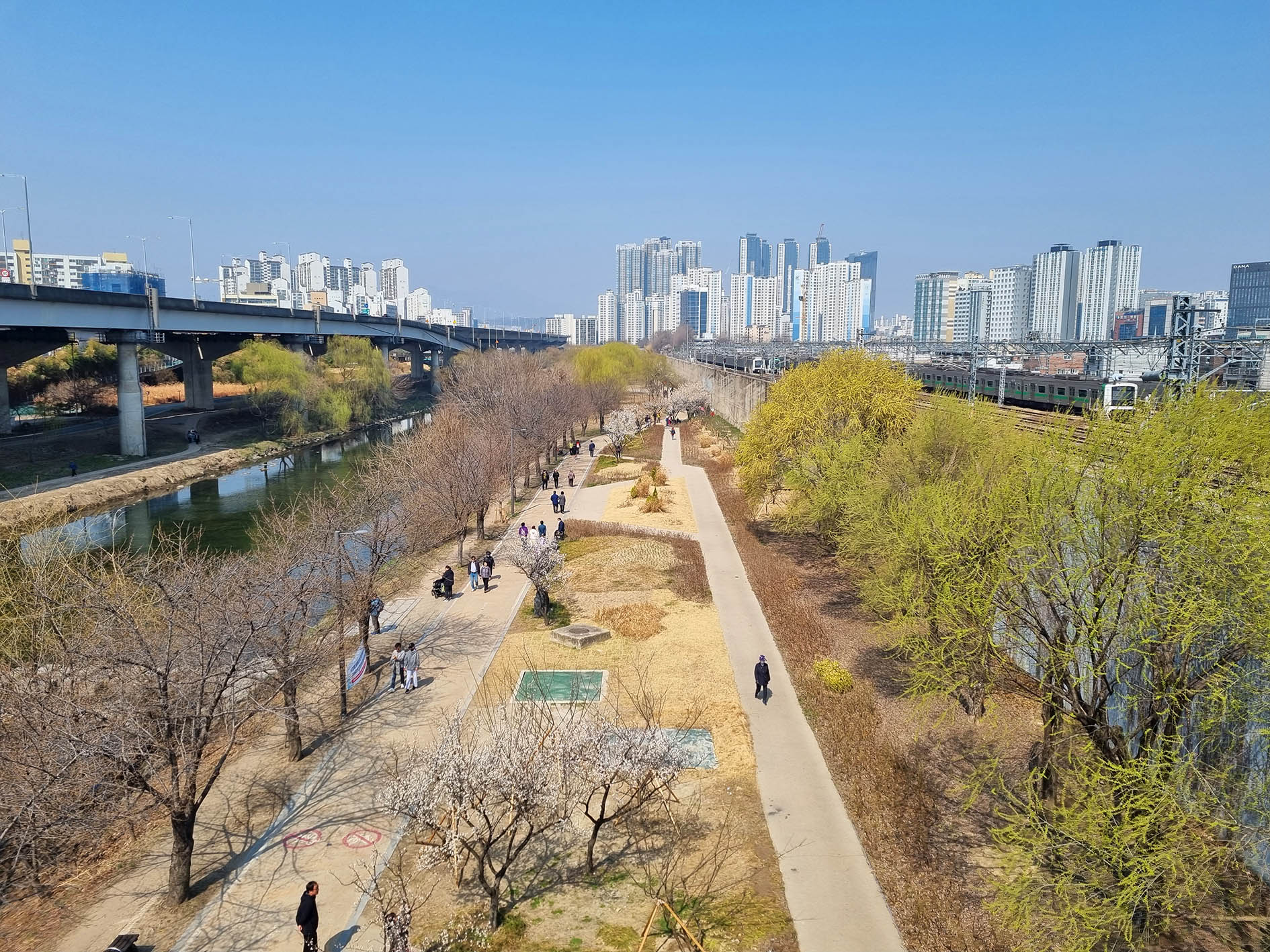 서울 성동구 청계천로변 하동 매실거리 산책로에 매화꽃이 만발하게 피었다는