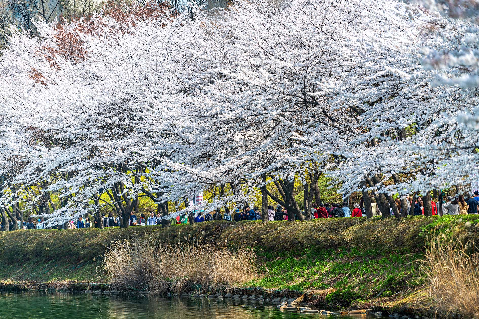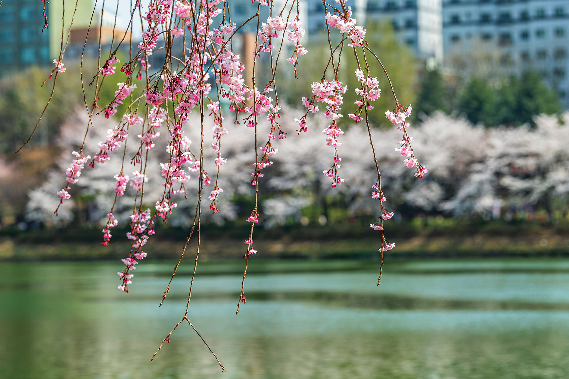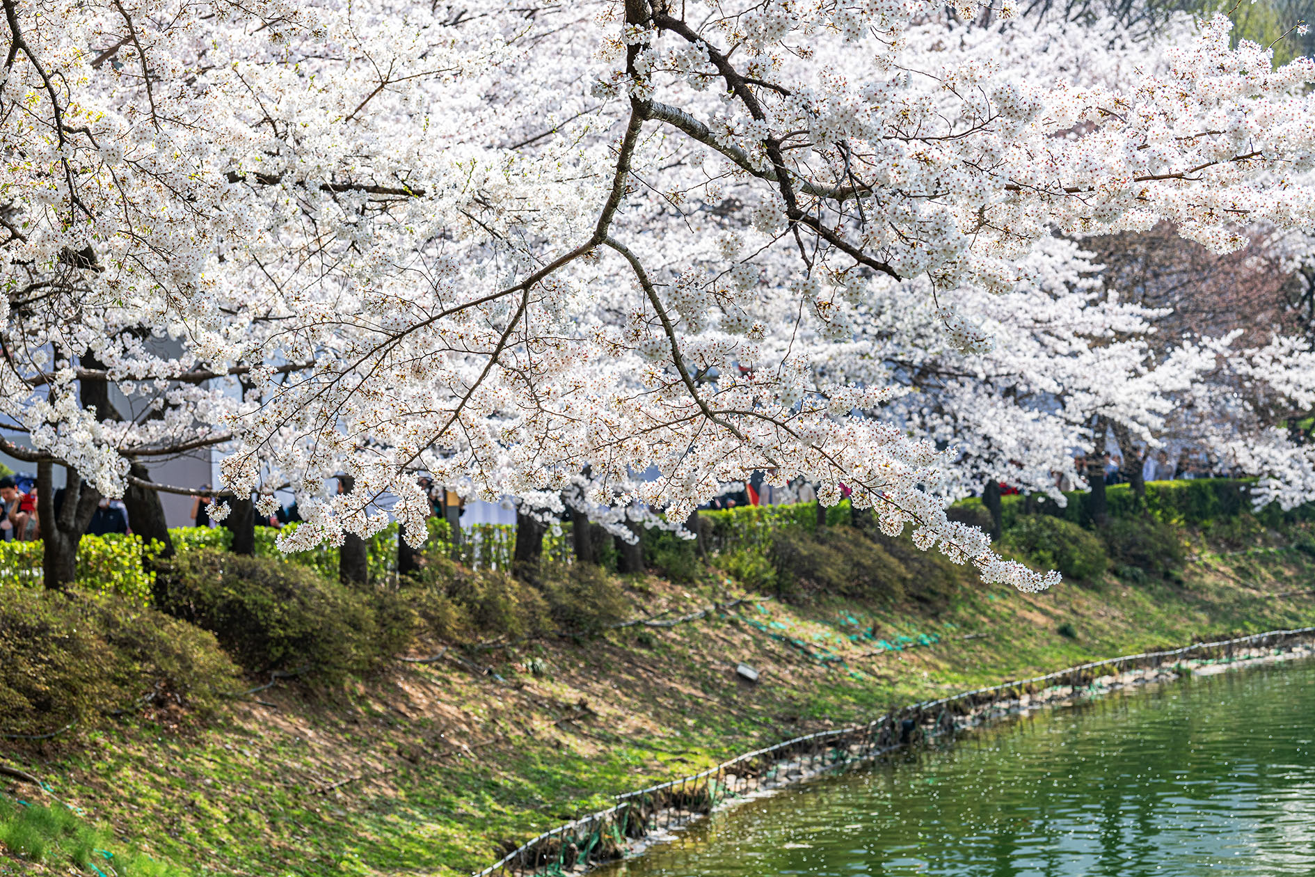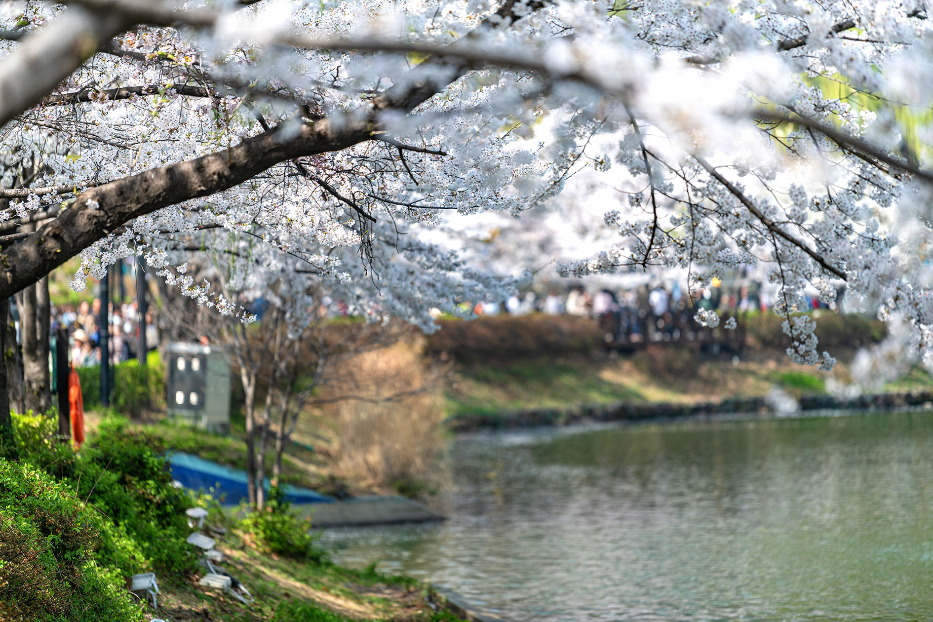 벚꽃은 호숫가를 따라 2.6km에 만개상태를 유지하고 있다