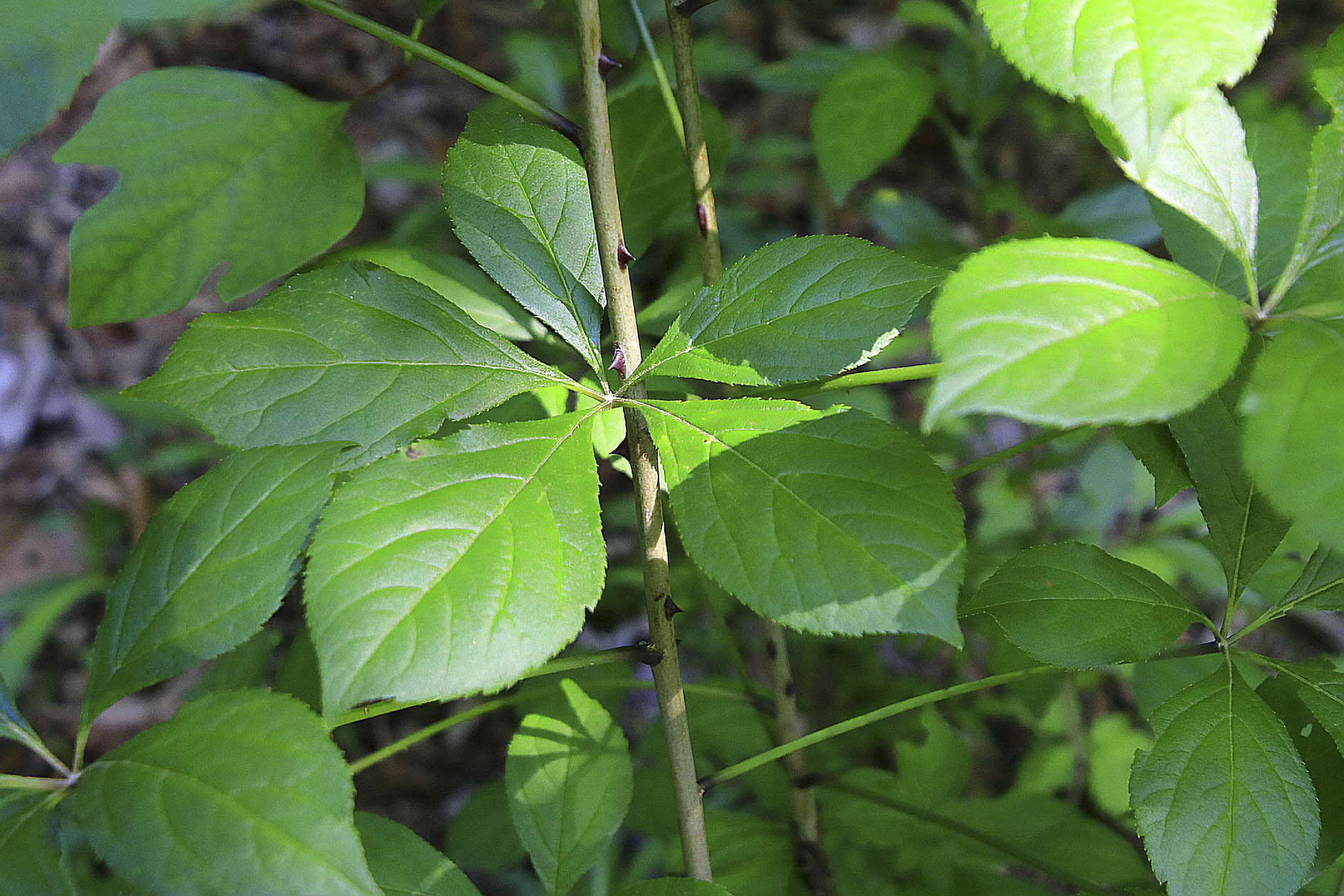 장미처럼 듬성듬성 가시가 나 있으면 일반 오갈피, 줄기에 가시가 빽빽하다면