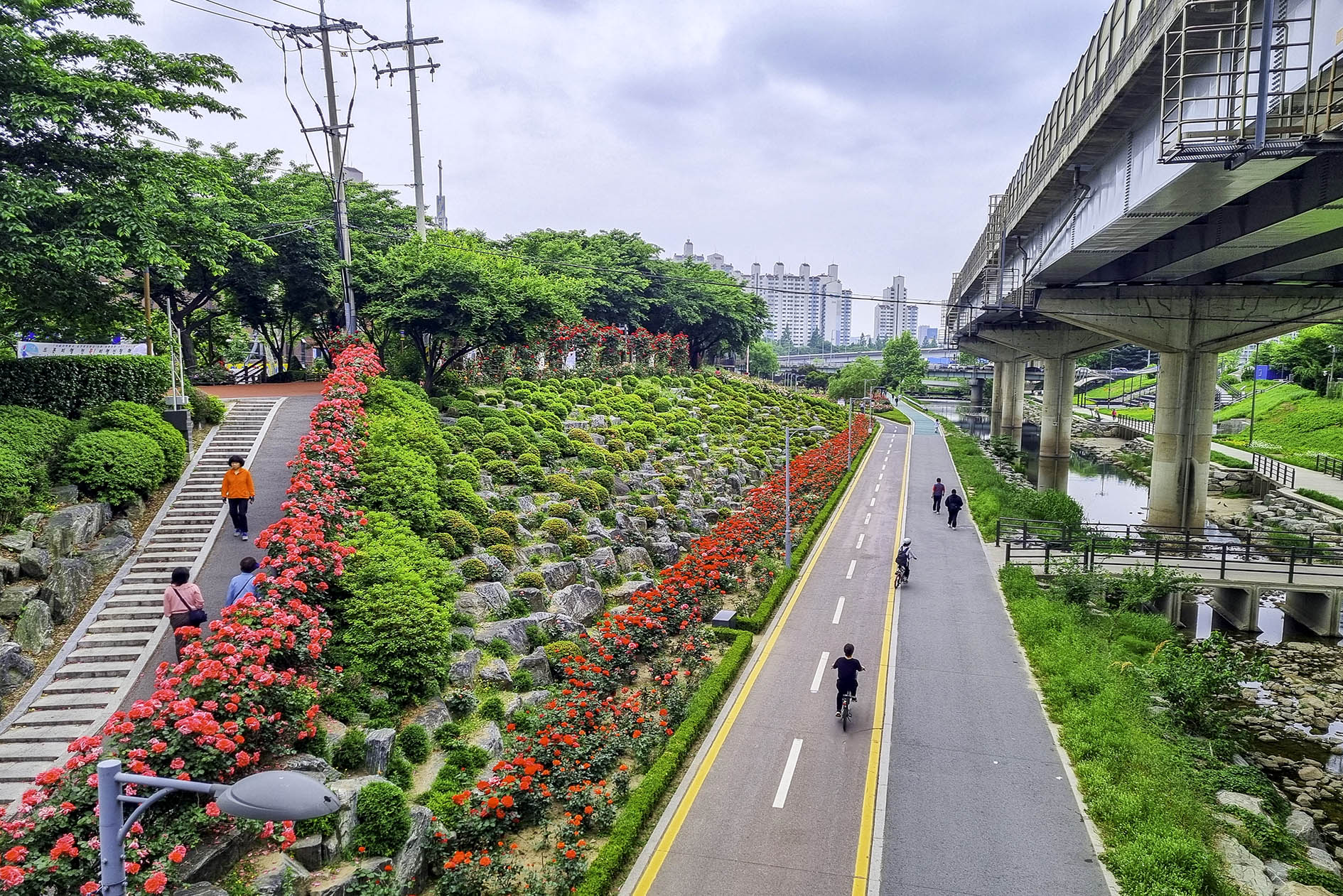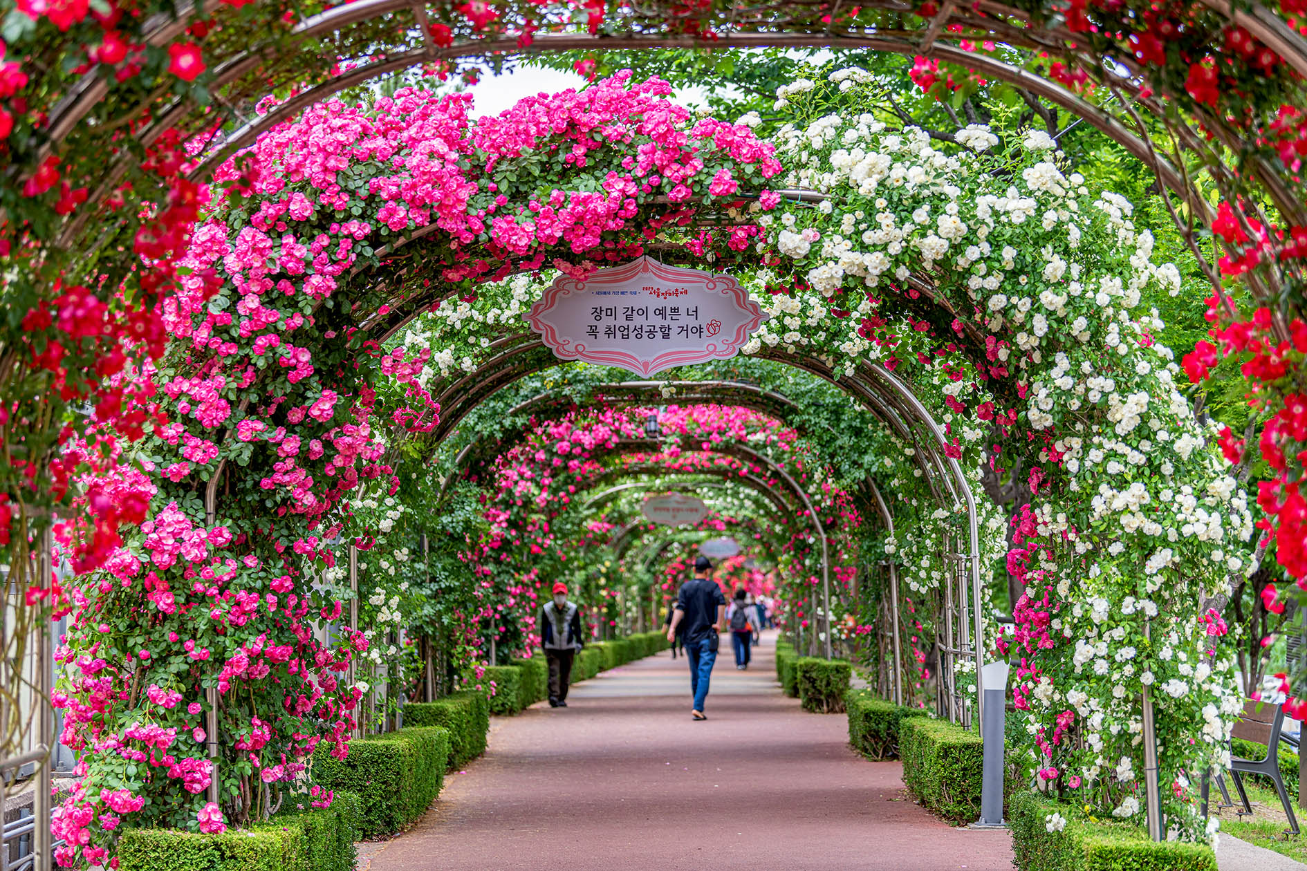 서울을 대표하는 장미축제는 중랑천 제방을 따라 조성된 5.45㎞ 국내 최대 규모의