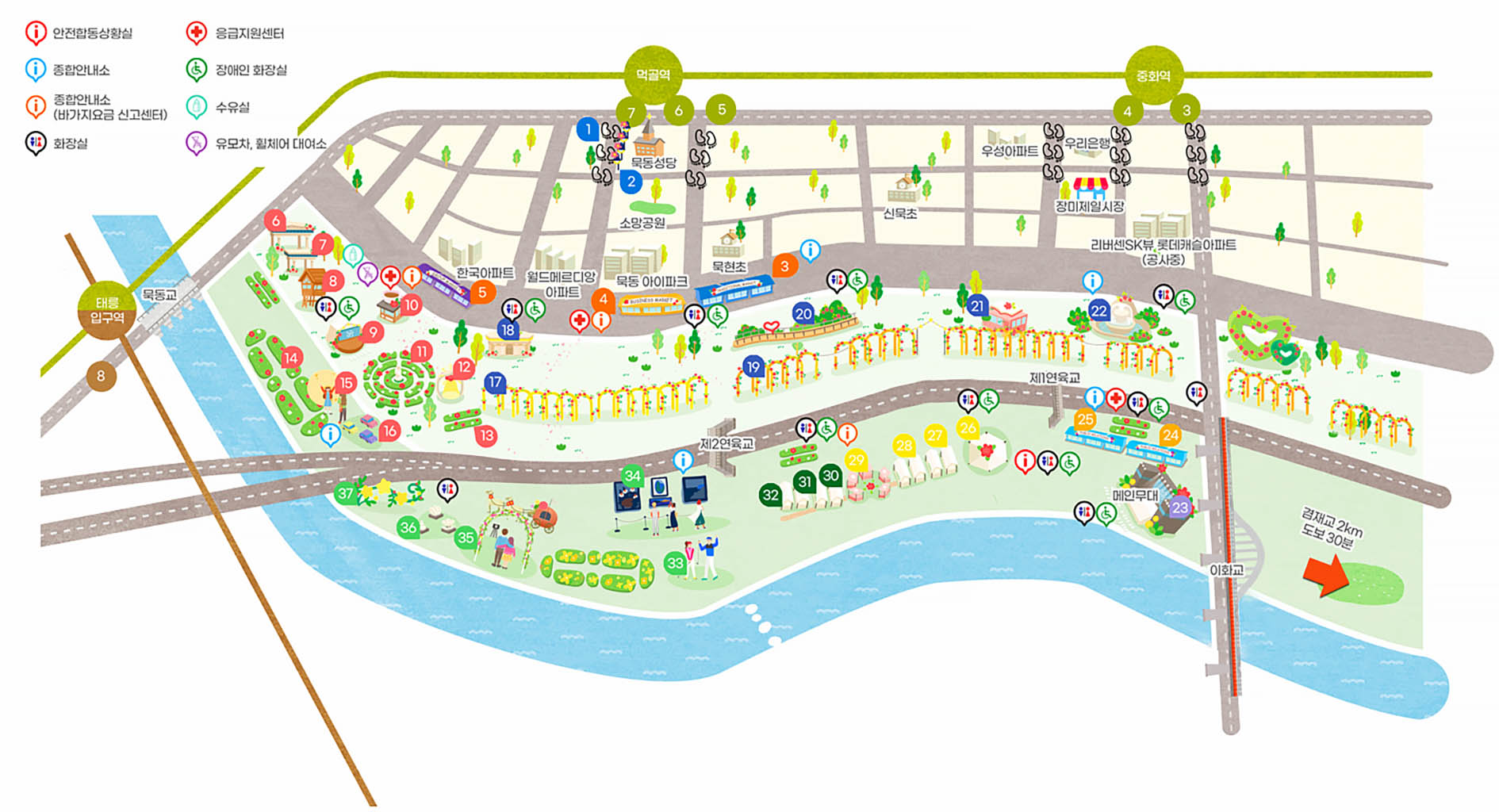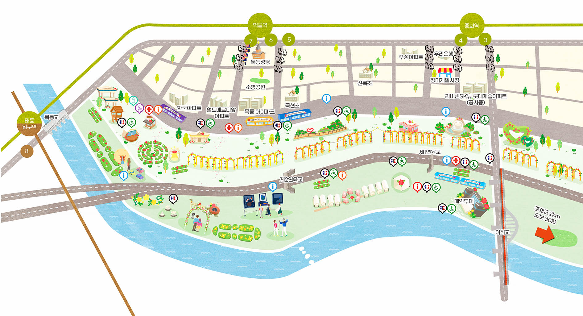 중랑천 일원 묵동교에서 겸재교 구간에 이르기까지 약 5.45Km 국내 최대 규모의