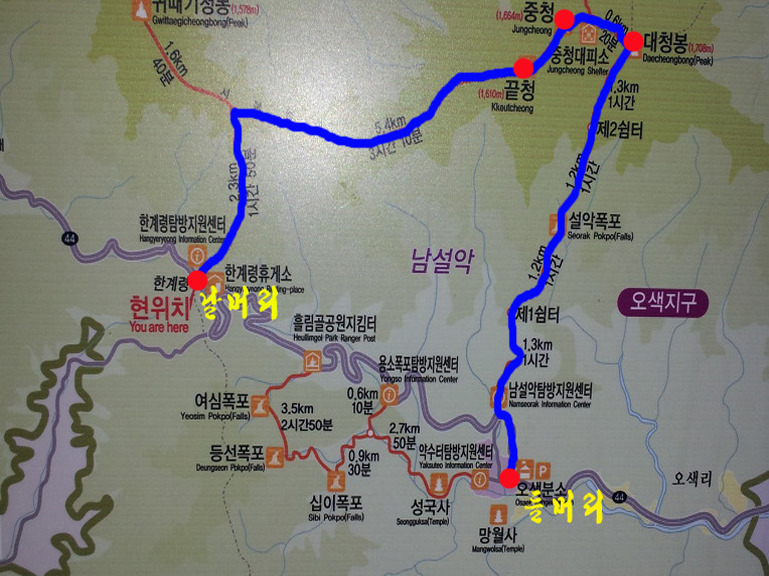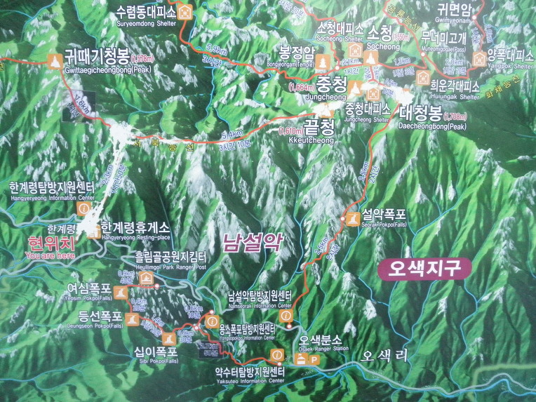 등산코스: 1,오색-대청봉-소청봉-회운각대피소-천불동-비선대-소공원.(11시간)