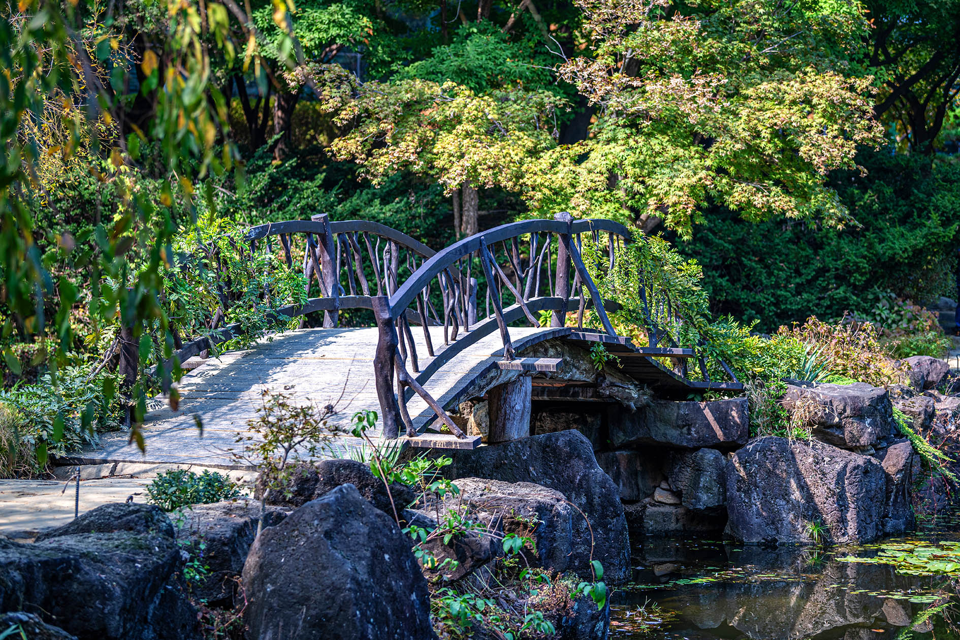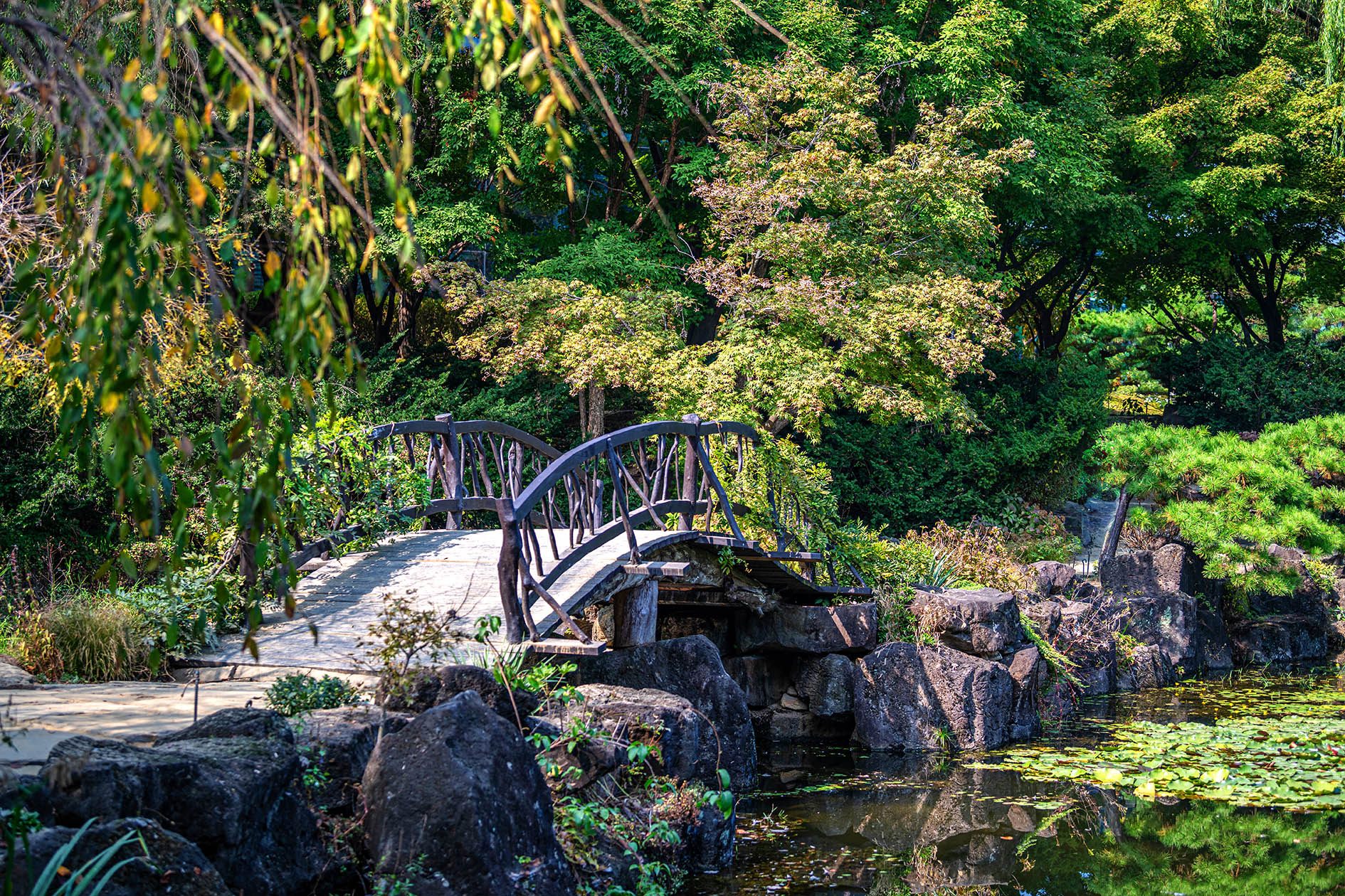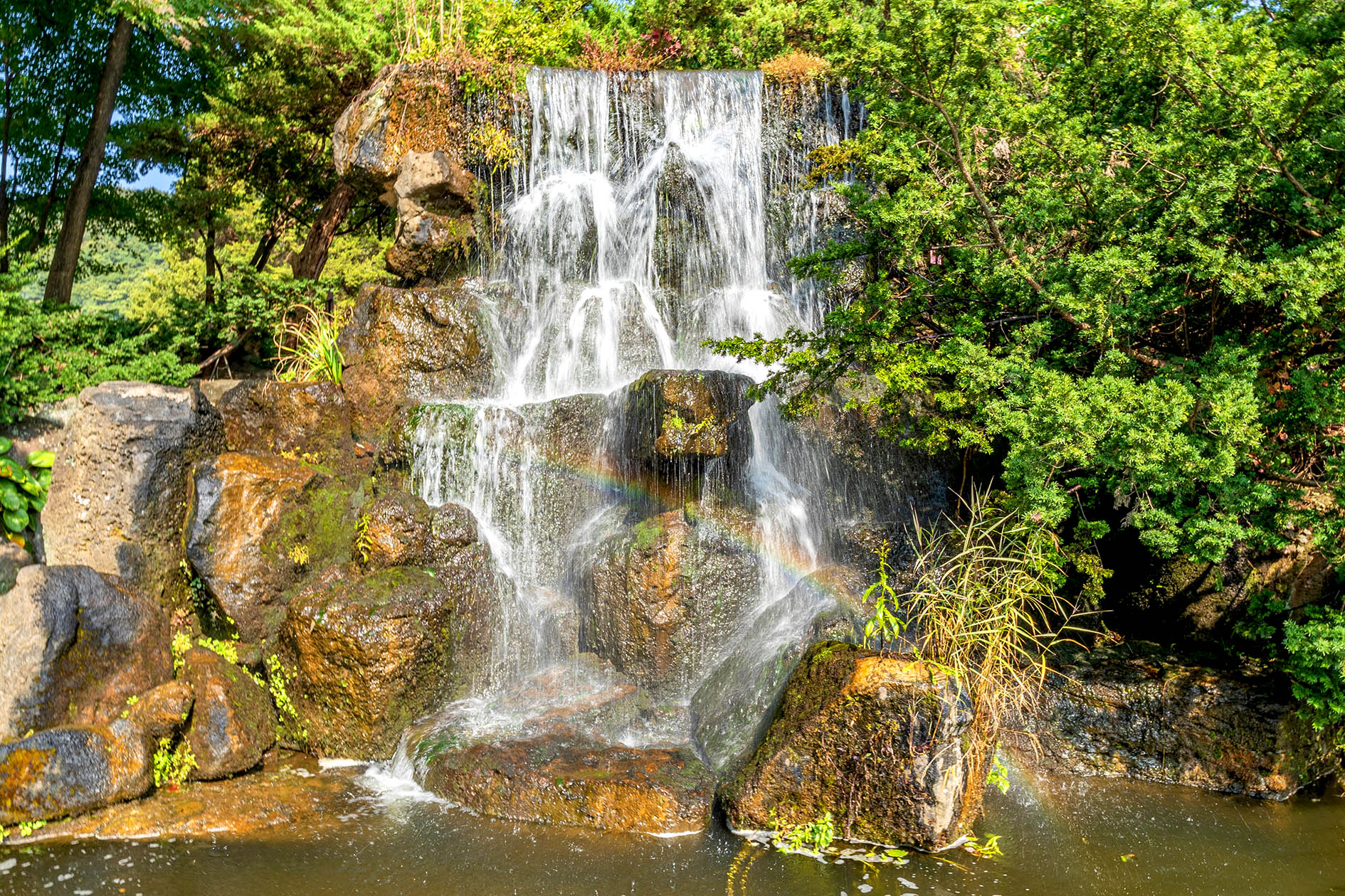 물, 나무, 바위, 교각, 정자, 수중 관람 데크 등