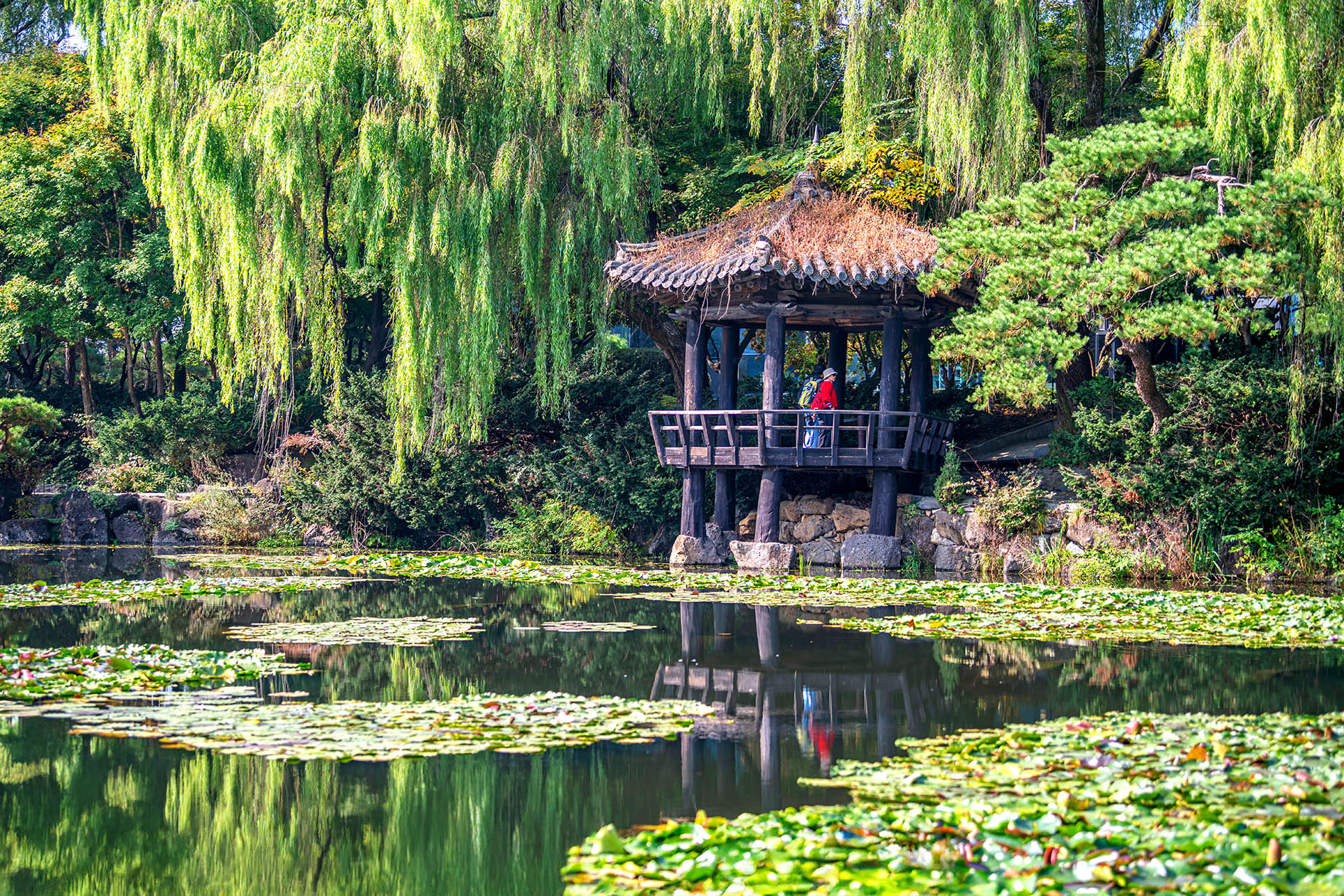 버드나무 아래 정자와 어우러져 멀리서 보면 한 폭의 산수화가 따로 없다.