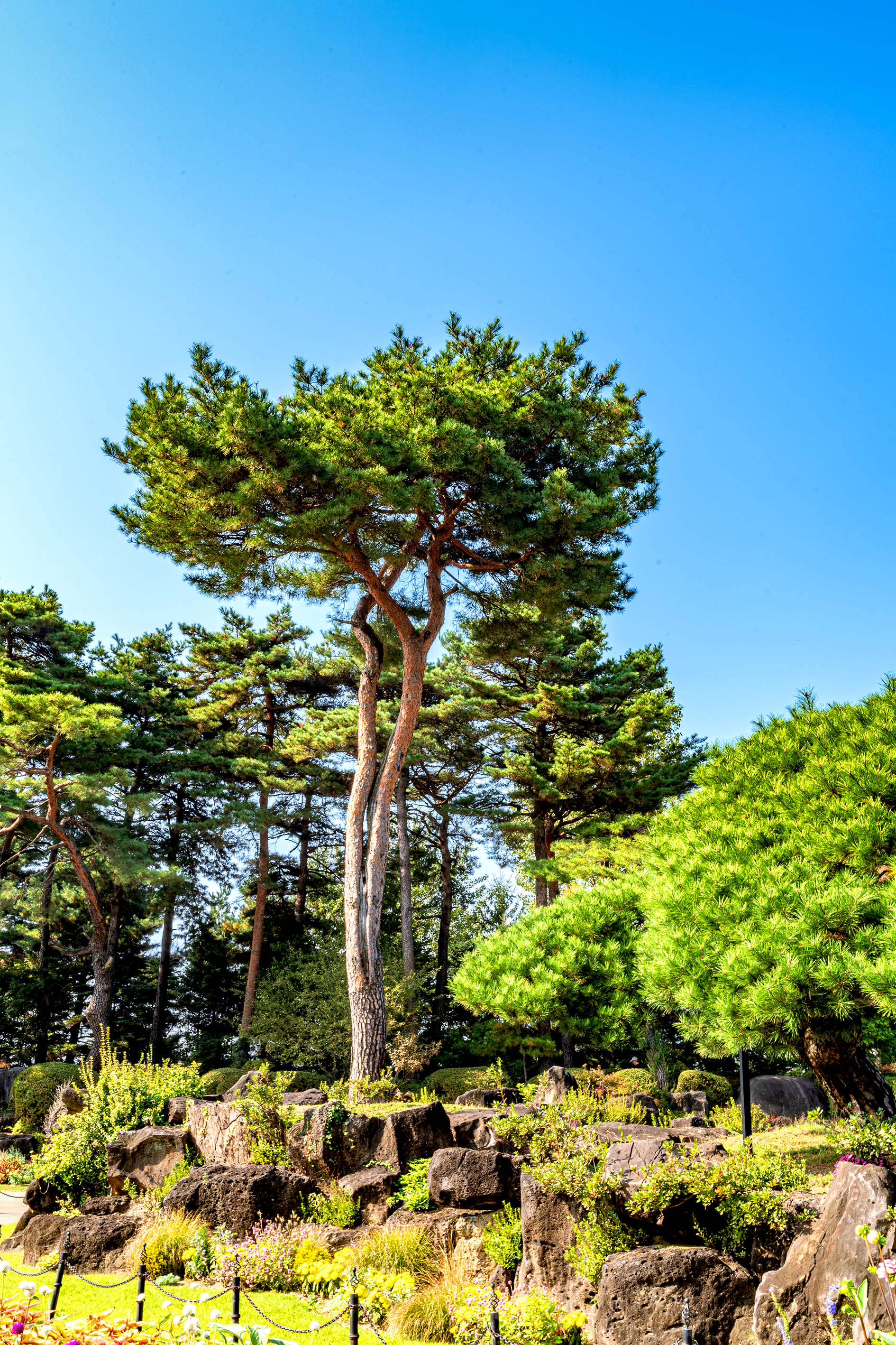 흑현무암 화단에 어우러진 교목, 관목들을 세계의 꽃들과 함께
