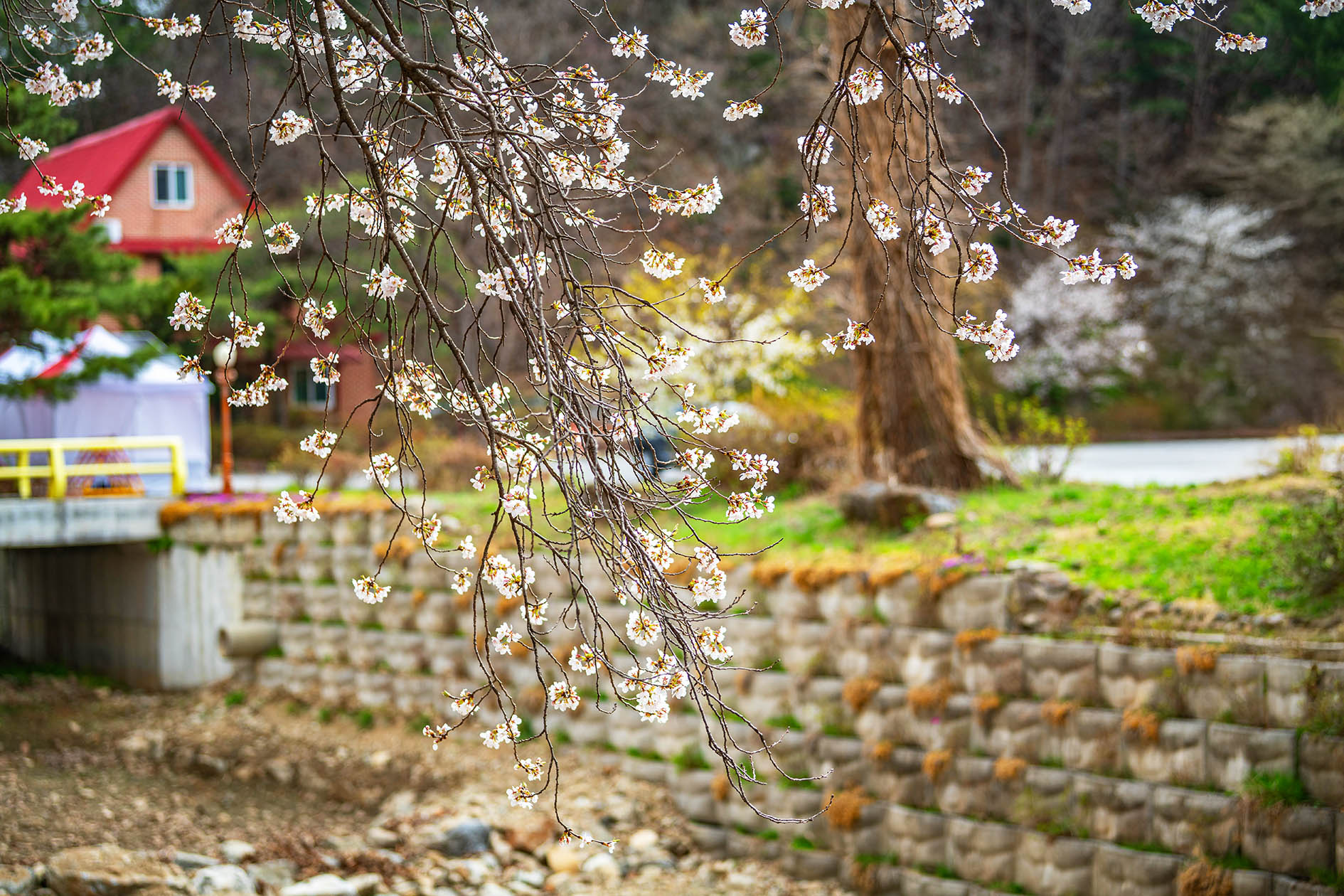 가평 벚꽃 개화 시기가 늦어 청평 내수면연구소와