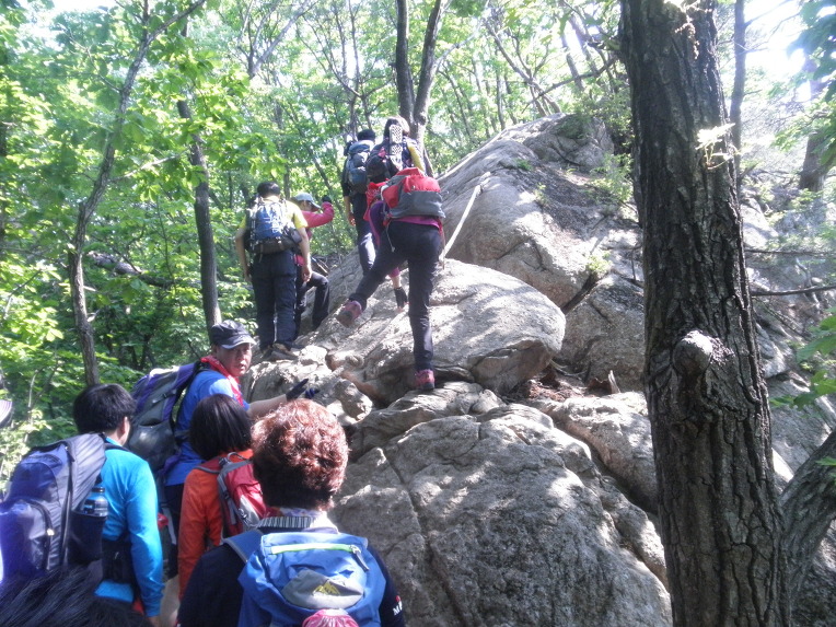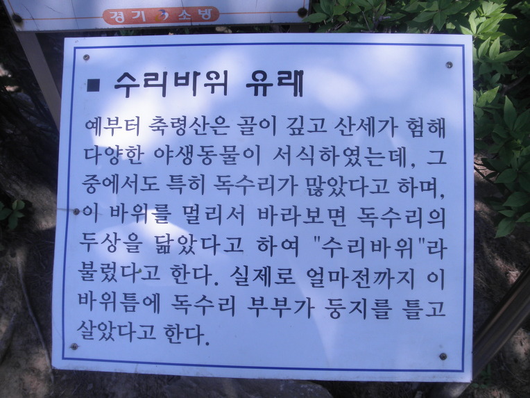 좀 더 오르다 보면 600미터 고도에 이르면 장관의 수리바위가 나타난다.