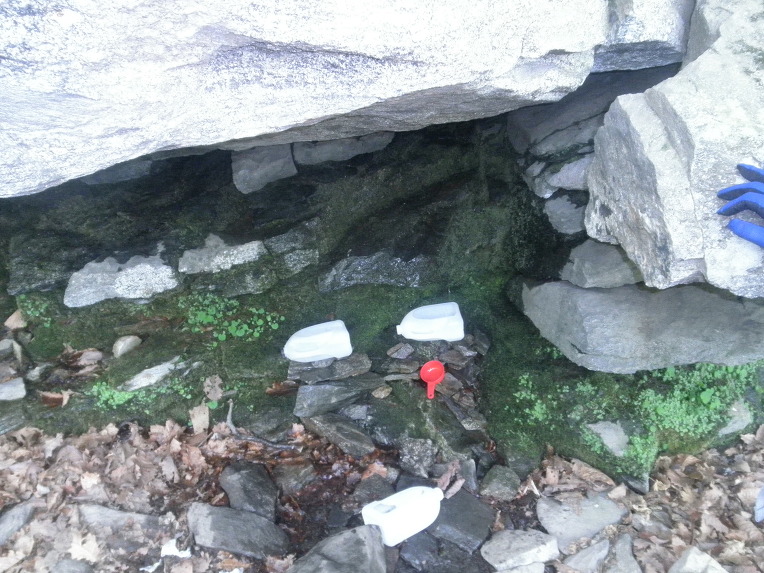 오르막 중간의 암벽 약수를 만나게 되는데 먹을 수 있는지는 의문이 간다.