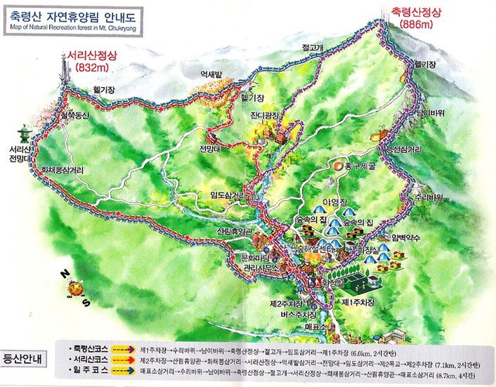 높이: 축령산 886m (100대 명산) 서리산 826m