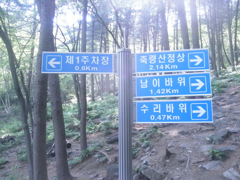 3,일주코스 버스종점 - 주차장 - 자연휴양림 관리사무소 - 서릉 - 수리바위 -