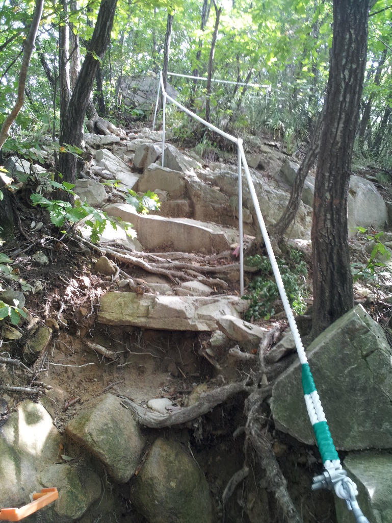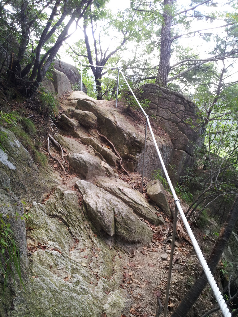 계단에 올라서면 또 다른 계단으로 이어지고 로프가 걸린 암벽에 올라서면 전망을