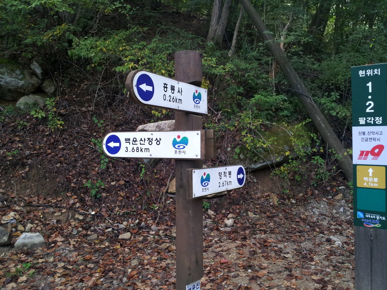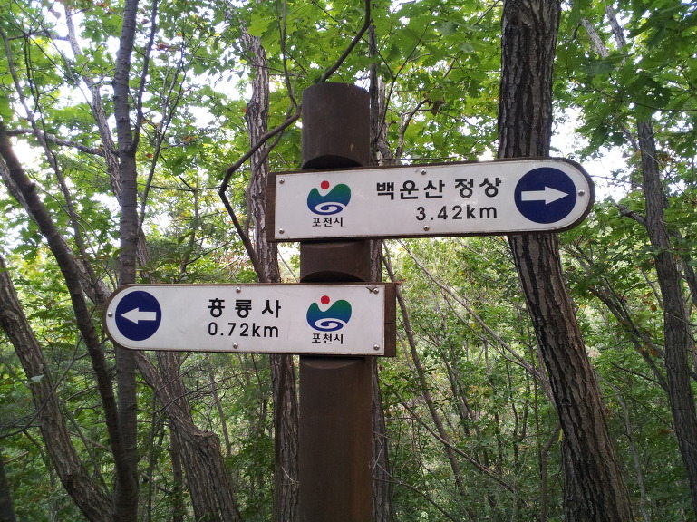 주차장을 출발해 흥룡사를 거쳐 백운1, 2교를 건너 삼거리 이정표에 도착한다.