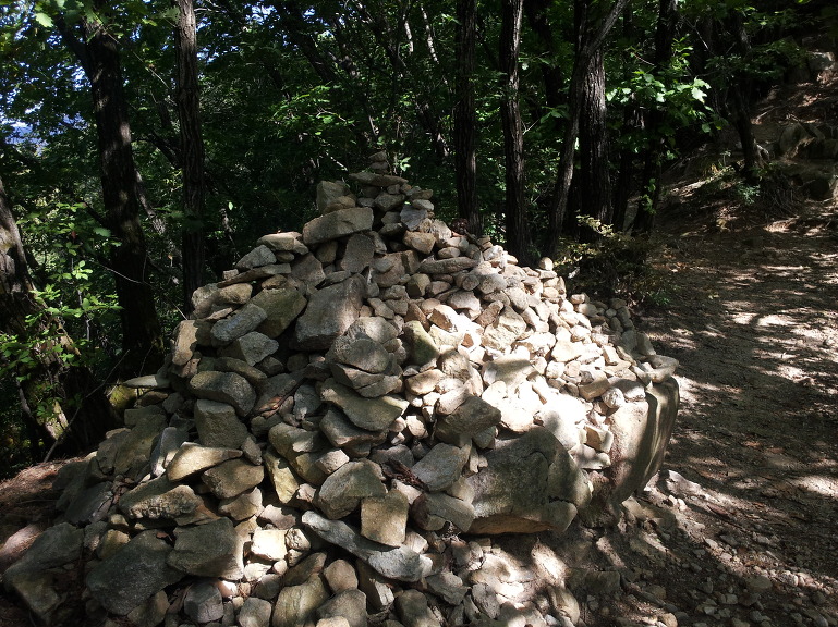 이어 로프가 걸린 가파른 등산로를 따라 오르면 산꾼님들이 오가며 쌓아 올린 돌탑이