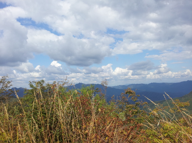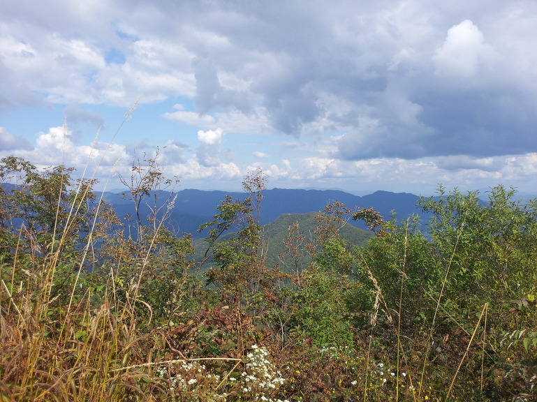 정상에서의 조망은 사방이 숲으로 둘러 쌓여 볼것은 없다.