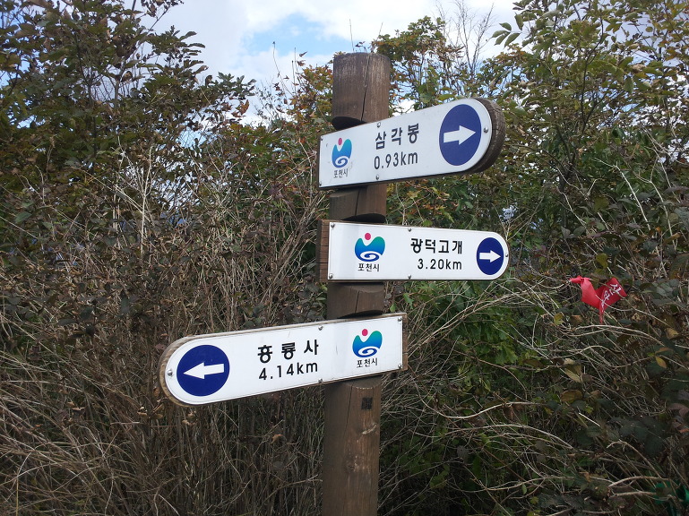 팔각정 삼거리 이정표.
