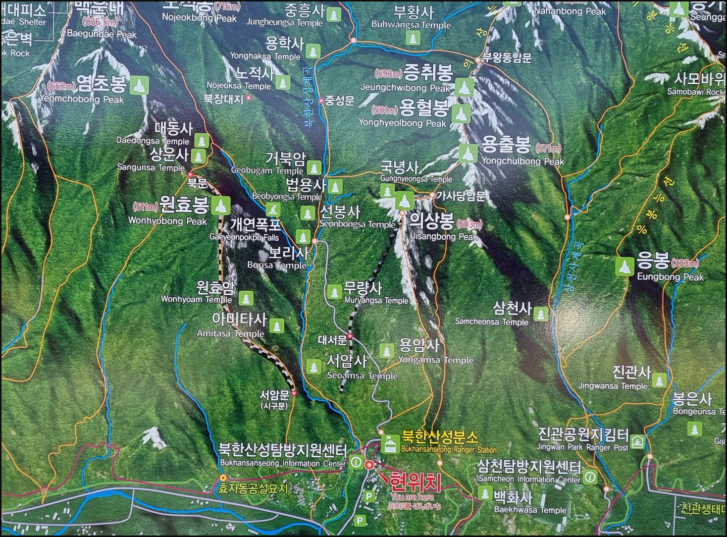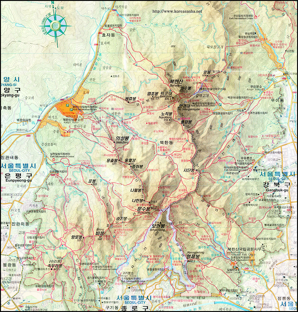 최고봉 백운대를 비롯해 모두 32개의 봉우리로 이루어 졌다.