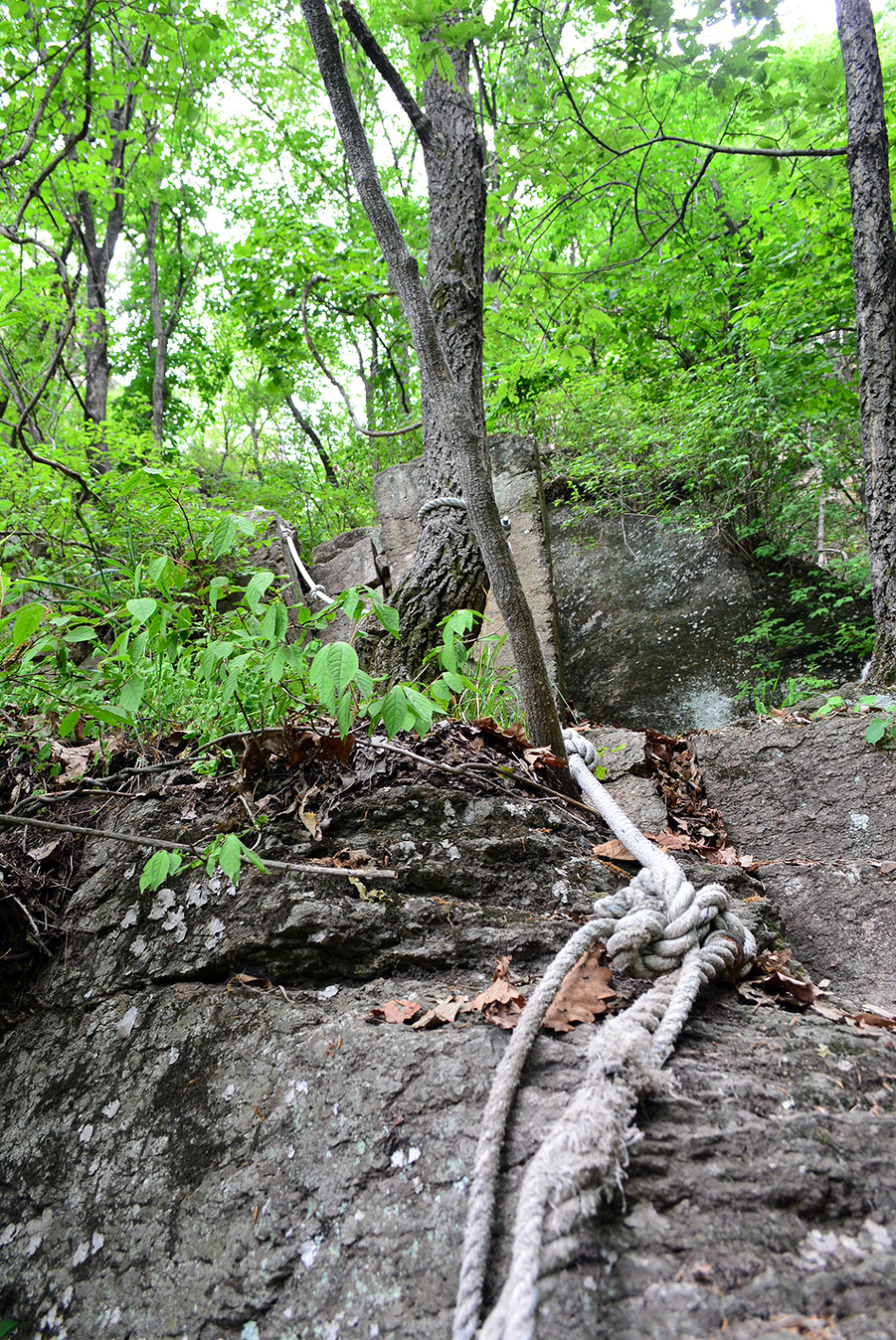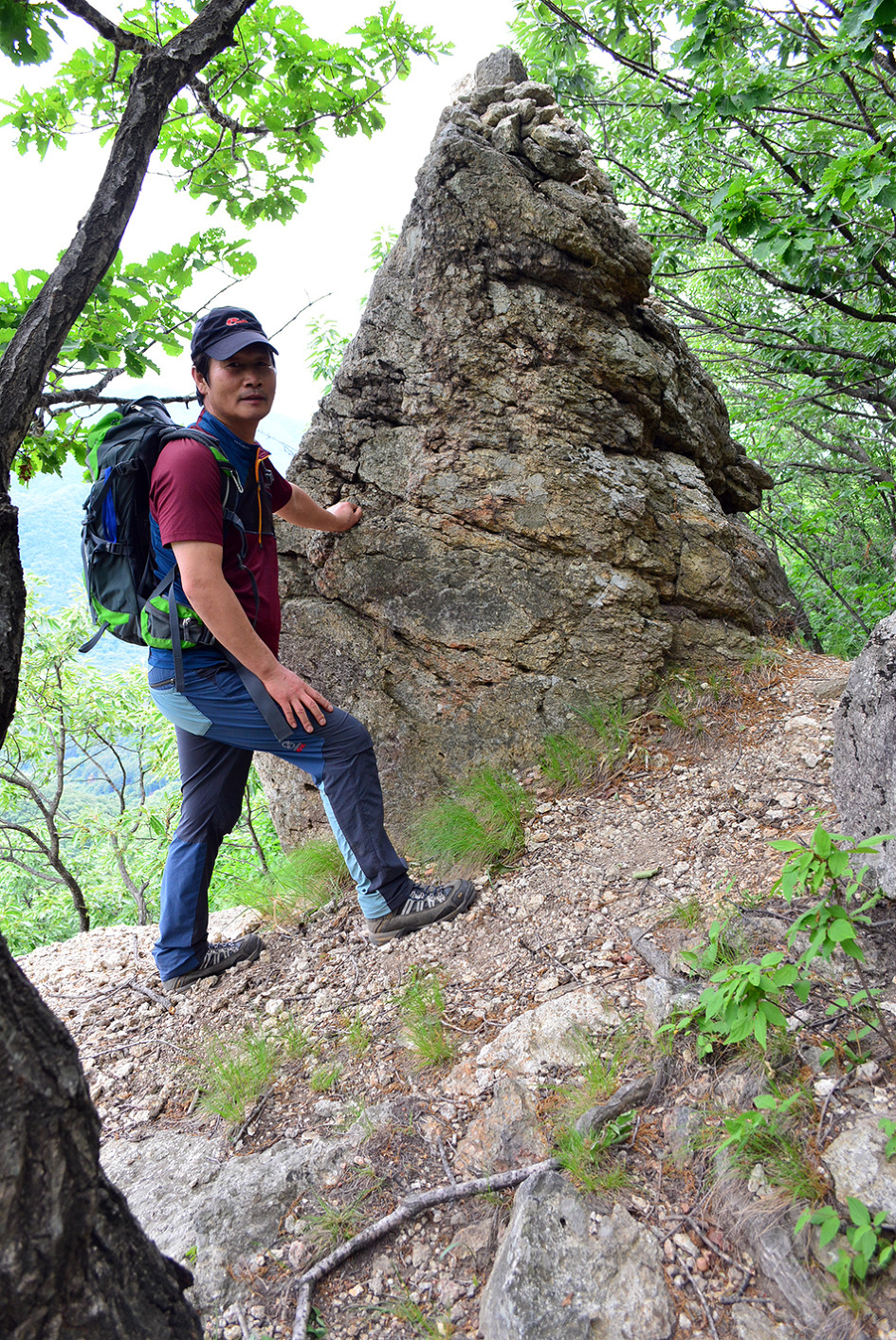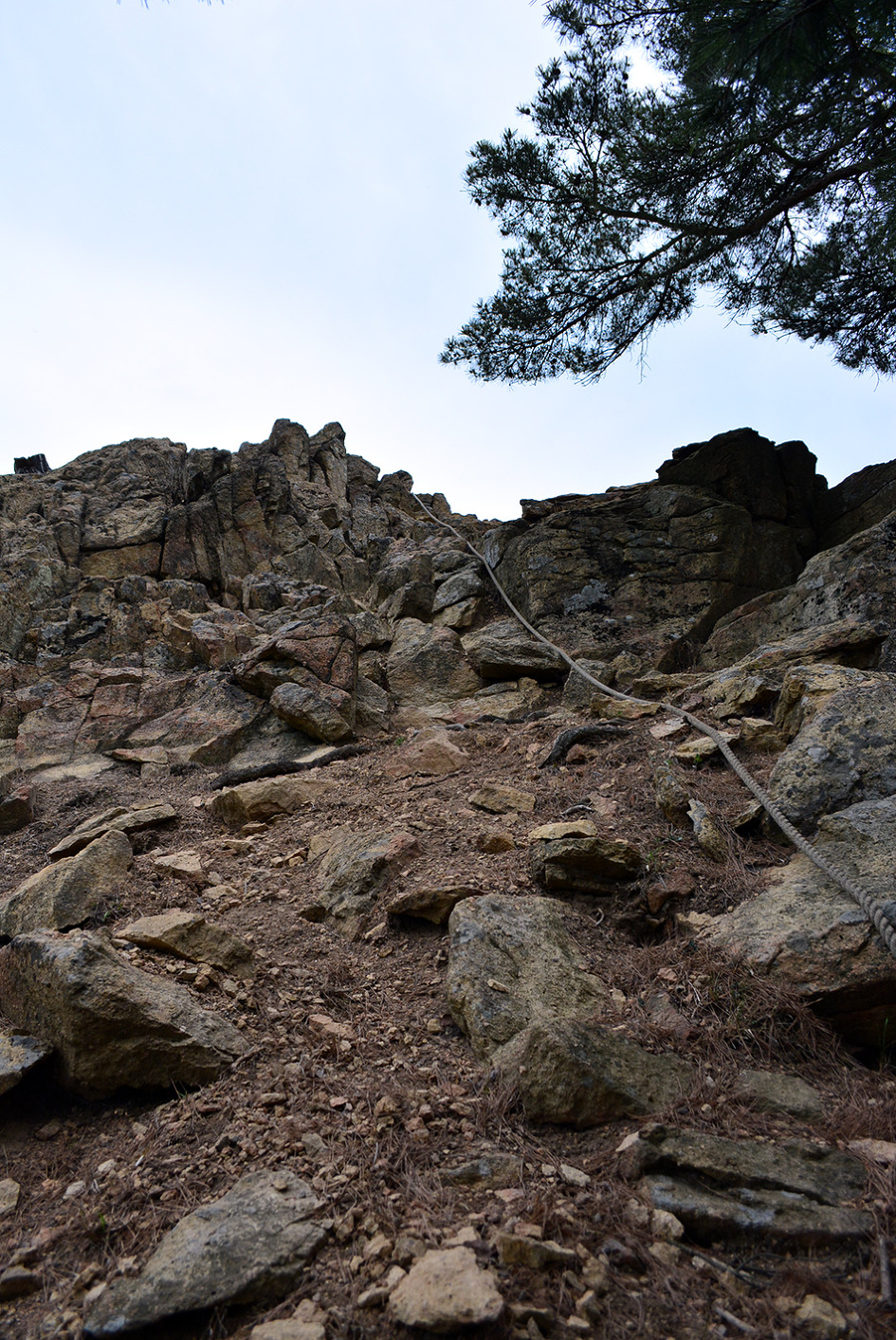 능선 암벽의 하산길이 가파르지만 보기보다는 쉽고 위험하지도 않다.