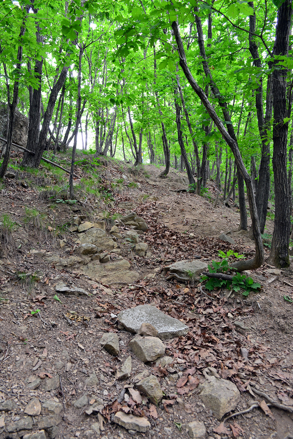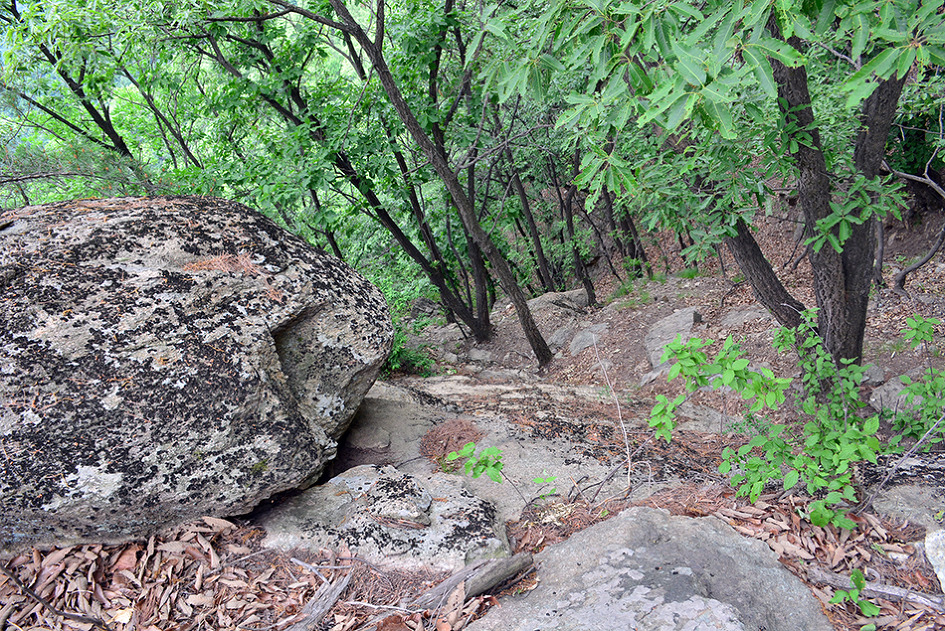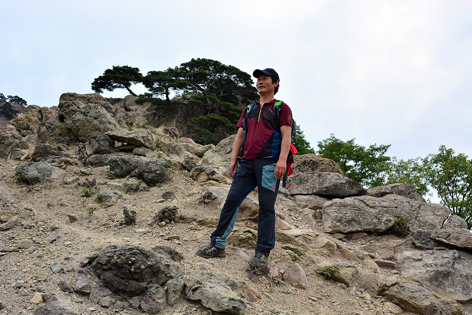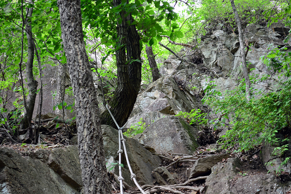 능선 암벽의 하산길이 가파르지만 보기보다는 쉽고 위험하지도 않다.