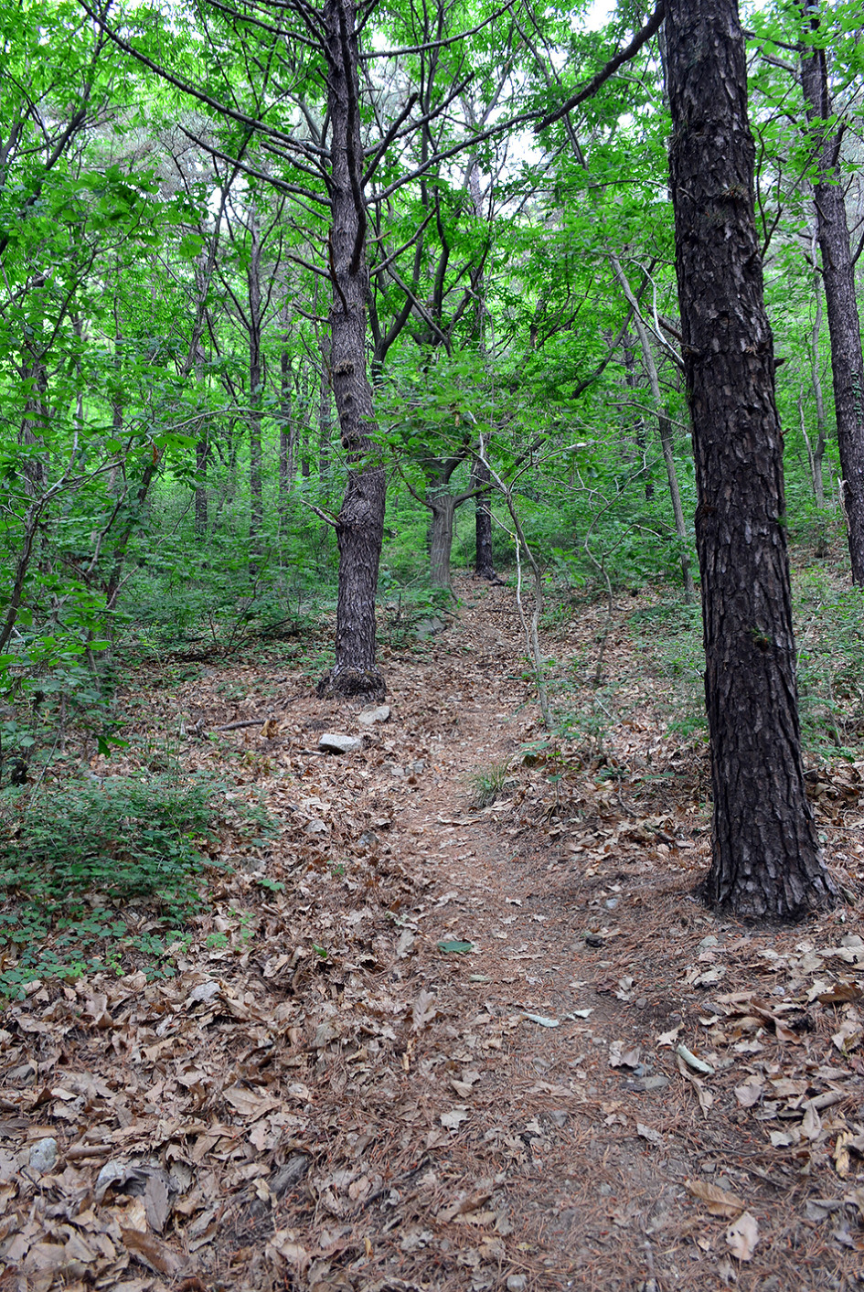 이정표를 따라 조금 오르면 밤나무 숲이 끝나고 소나무 숲이 시작된다.