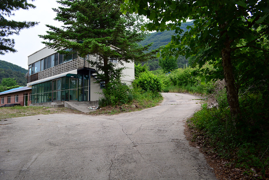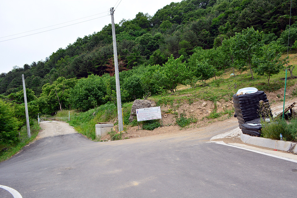 여기서 다시 임도를 따라가면 밤나무 농장과 마지막 민가를 지나서 도로와 만나게 된다.