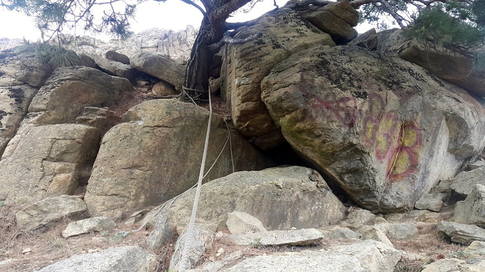사다리를 따라 오르면 커다란 굴이 나타나는데 이것이 바로 바위 굴성이다.