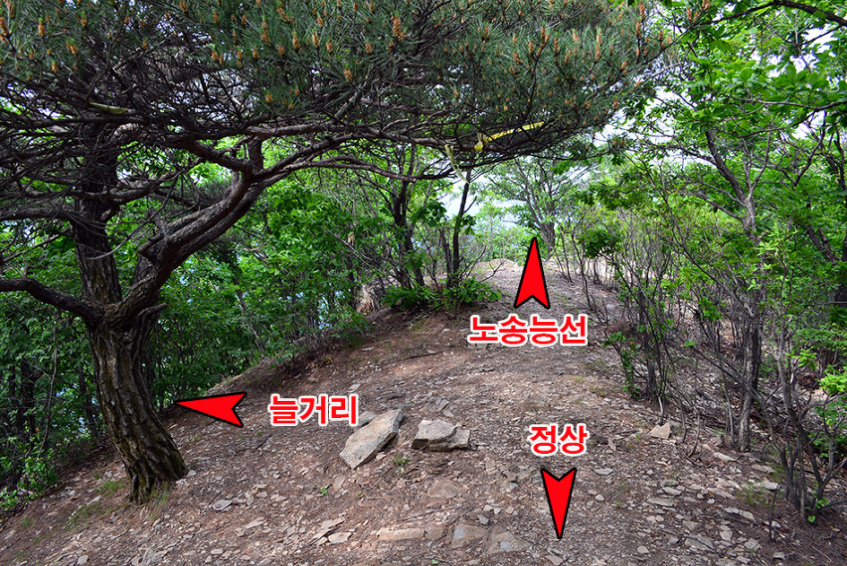 이곳 삼거리에서 노송능선 방향으로 직진 한다.