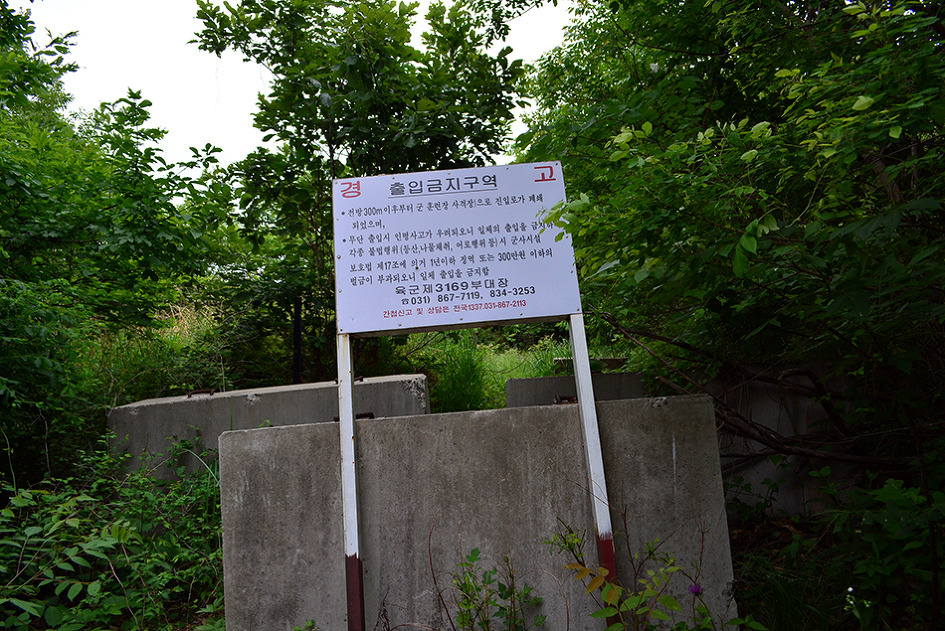 임도가 끝나는 지점에 출입금지구역이라는 경고 문구가 있다.