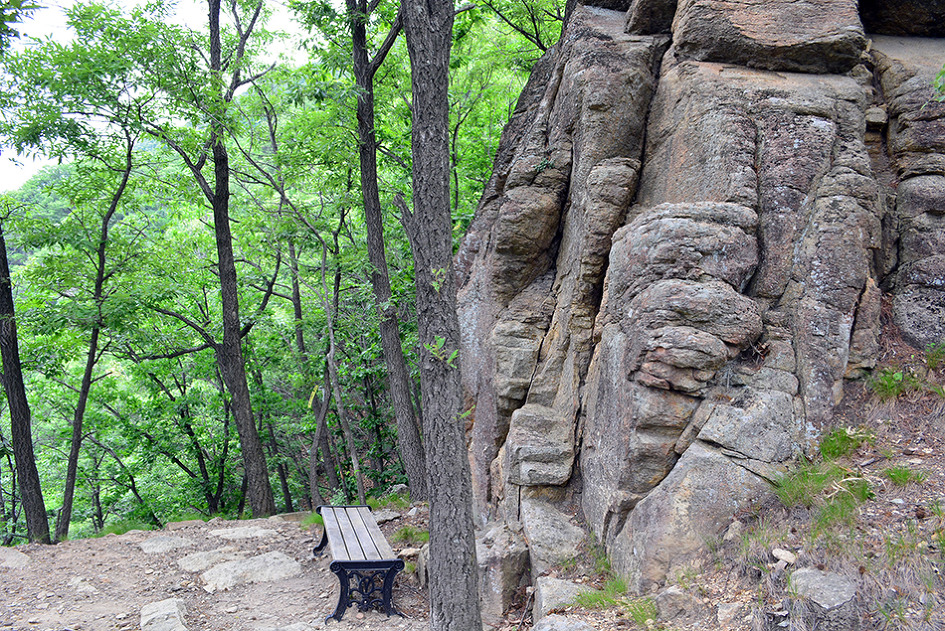 굴을 돌아 오르면 나무의자가 있는 쉼터가 나온다.