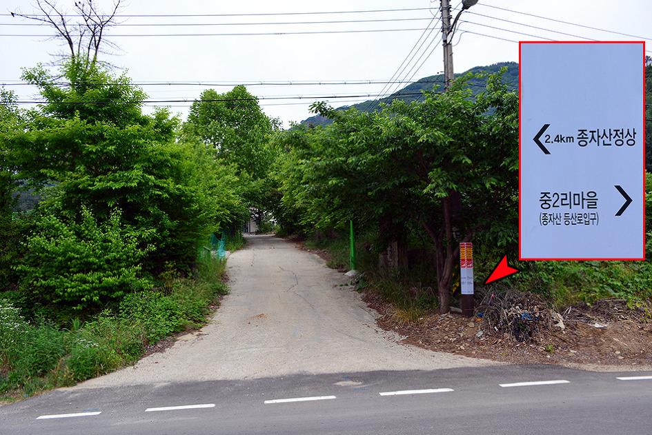 콘크리트 길을 따라 우측으로 돌아서면 종자산 1.55km라는 이정표가 있다.
