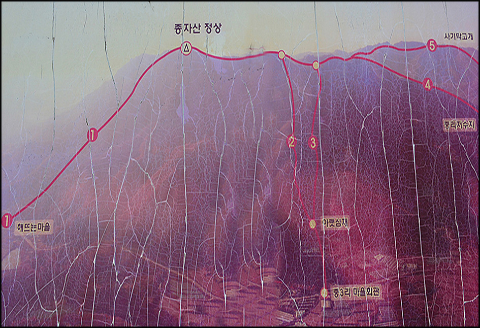 등산코스: 늘거리- 바위굴성 - 종자바위 - 종자산 - 갈림길 - 중리저수지(약 3시간 30분)