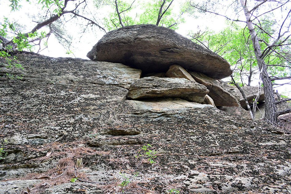 거대한 야회음악당 같은 바위굴성은 높이 20m, 폭 30m의 오버행 절벽이다.