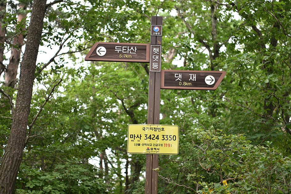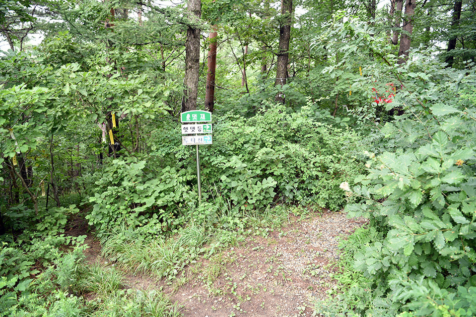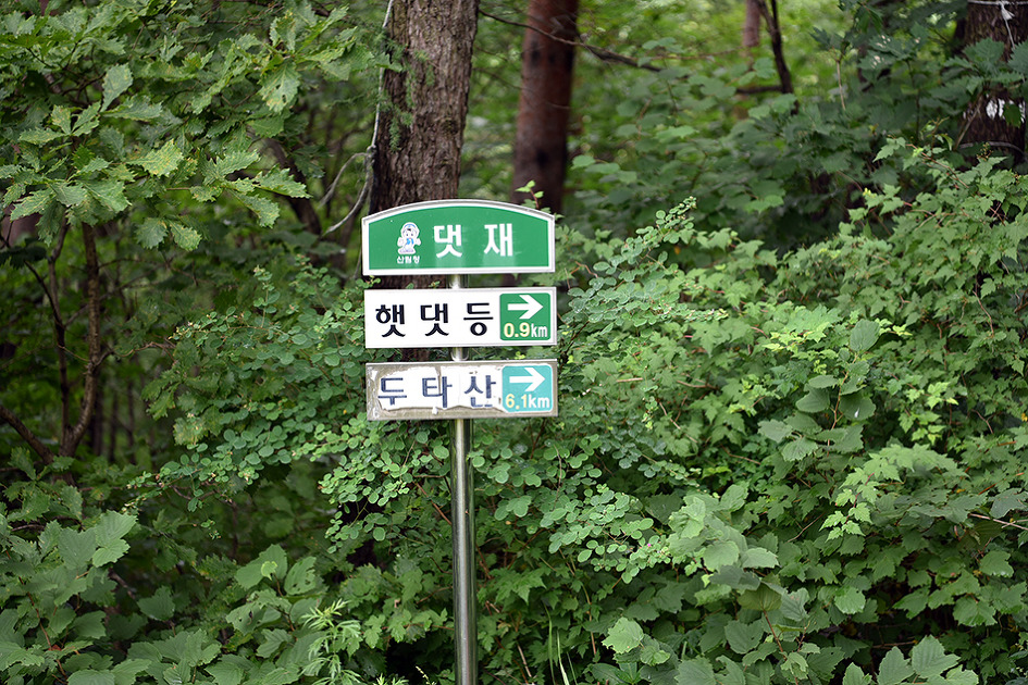 초입 댓재 이정표가 있는 곳에서 우측 햇댓등으로 오르면 0.9km를 올랐다가
