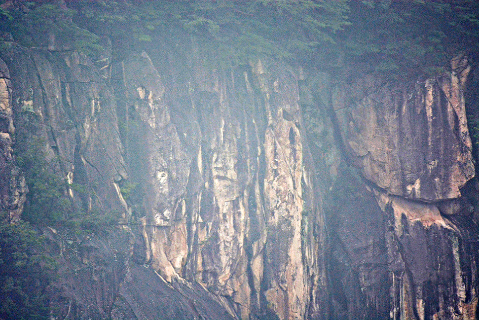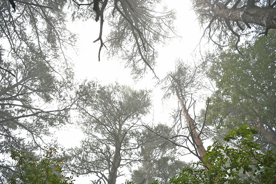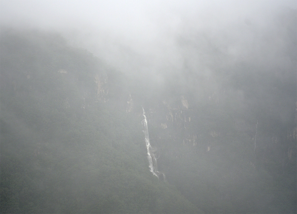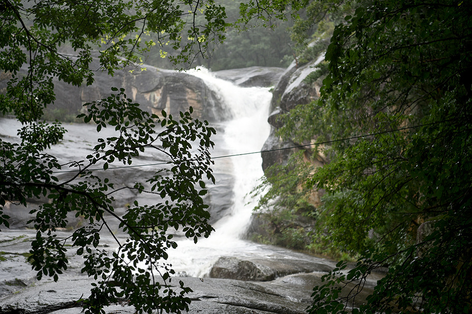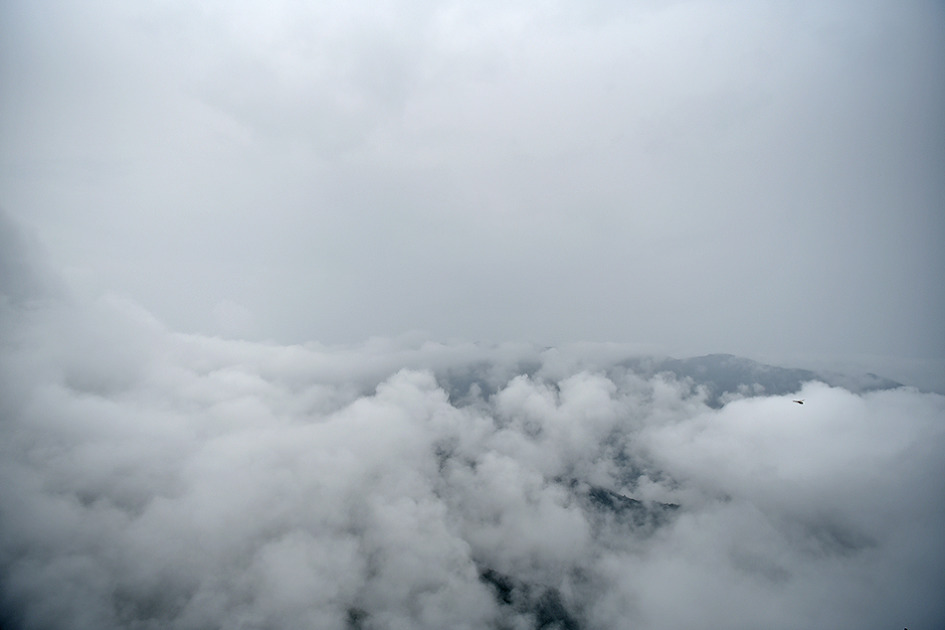 엄청나게 쏟아지는 비가 정상에 오르니 멈춘다.