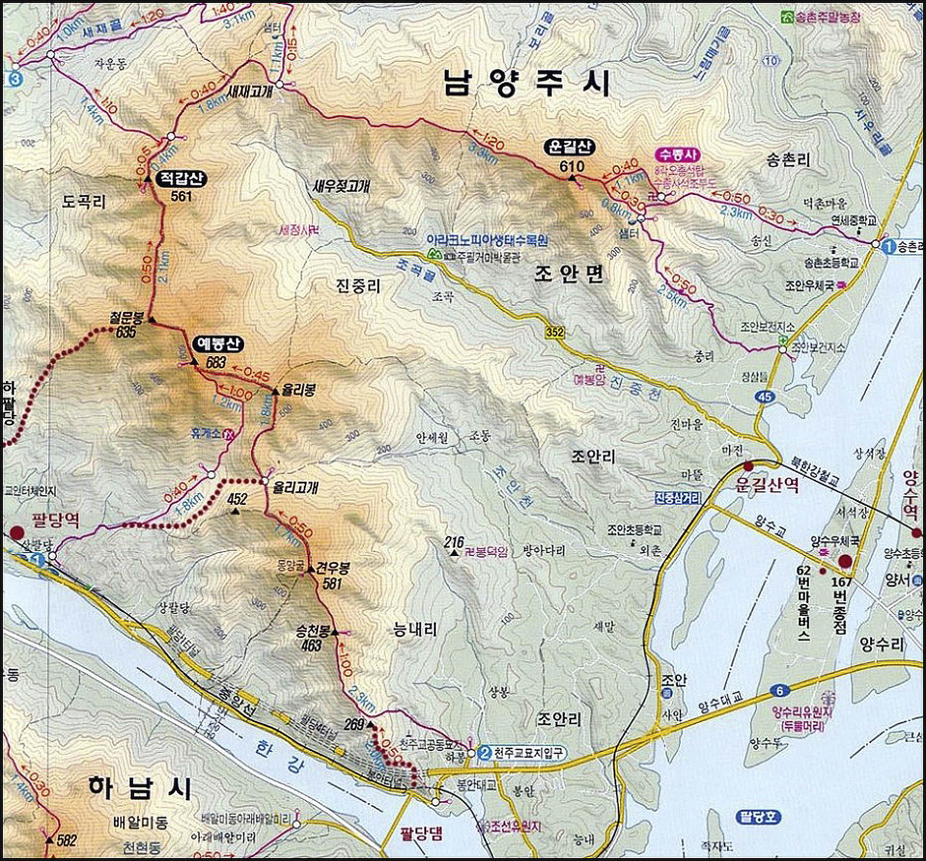 팔당역 - 예봉산 - 철문봉 - 적갑산 - 도곡3리마을회관 - 도심역