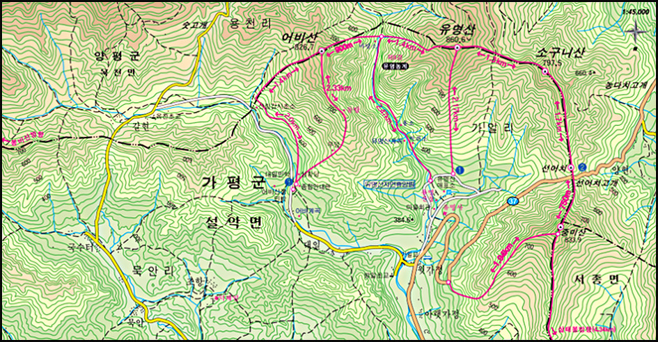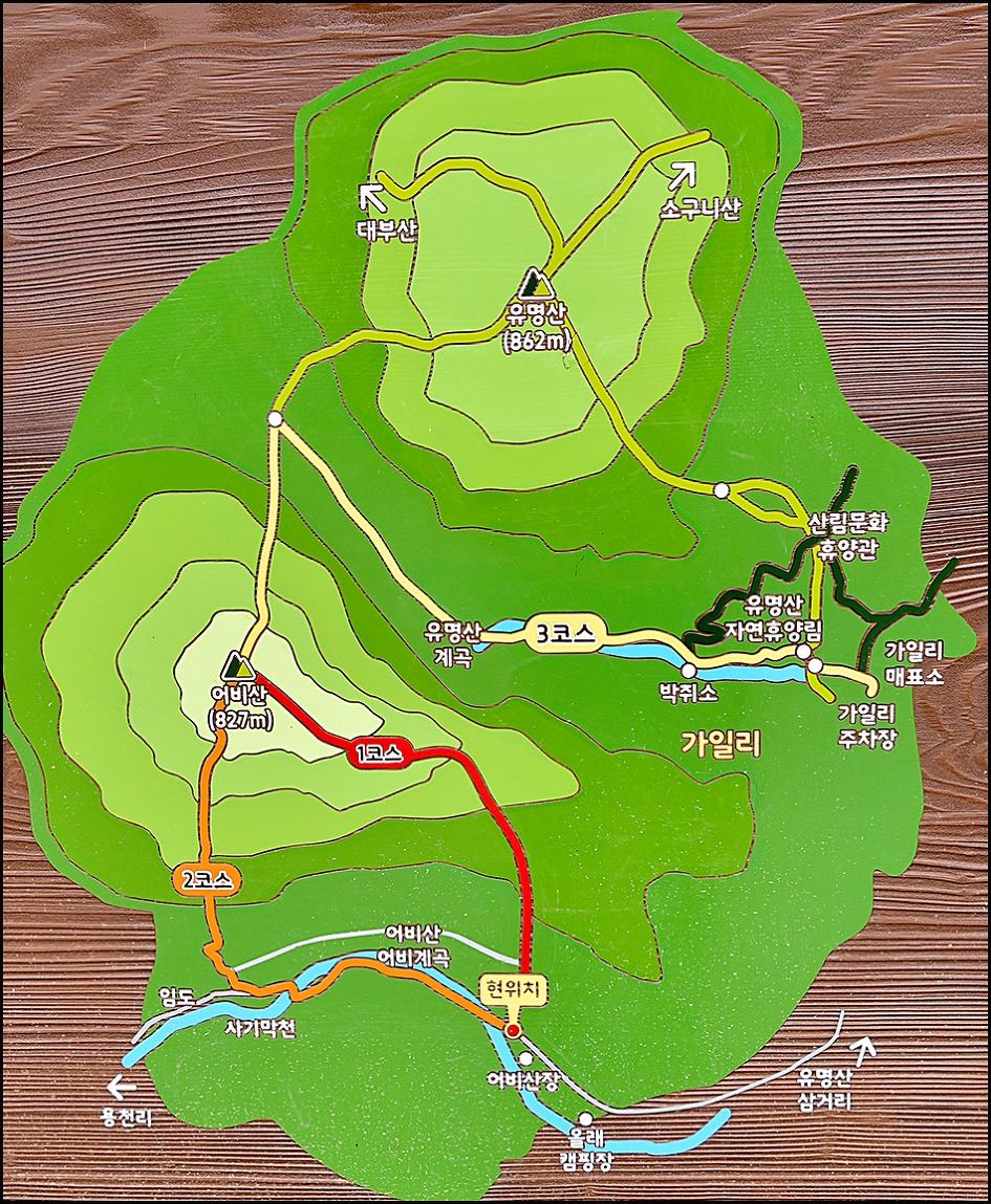 3코스 - 가일리주차장 - 유명산계곡 - 어비산 정상 (3.60km 2시간 30분)