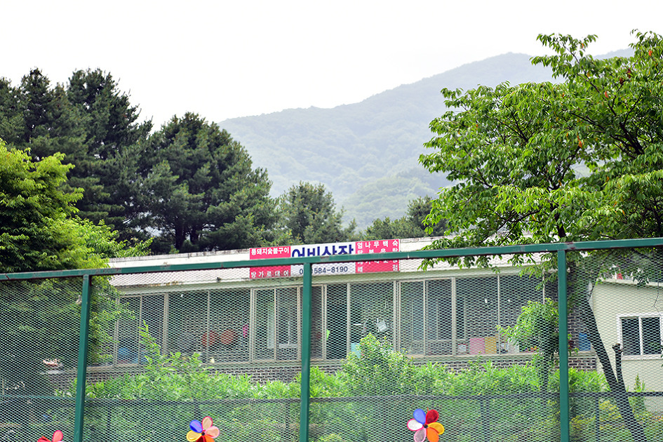 포장 임도를 따라 20여 분 내려가면 1코스 산행 들머리인 어비산장이 나온다.