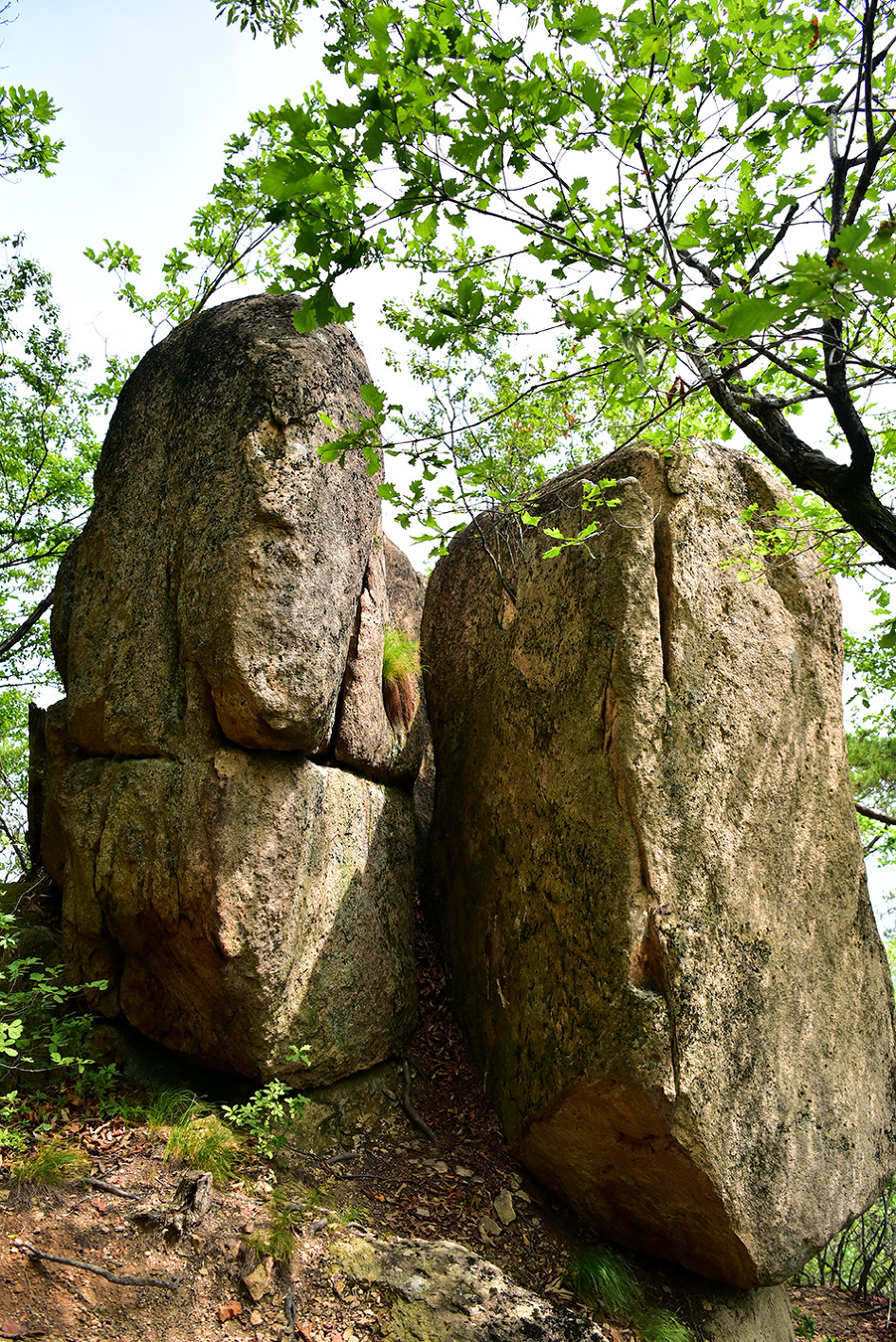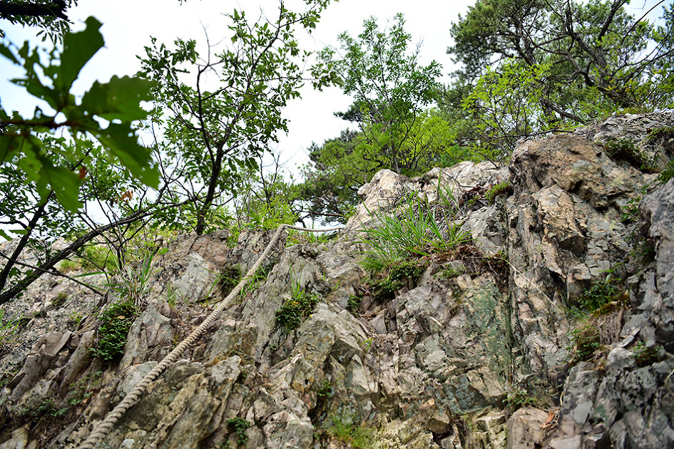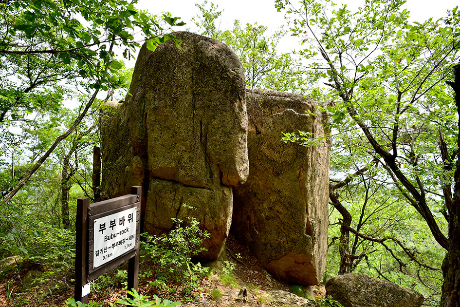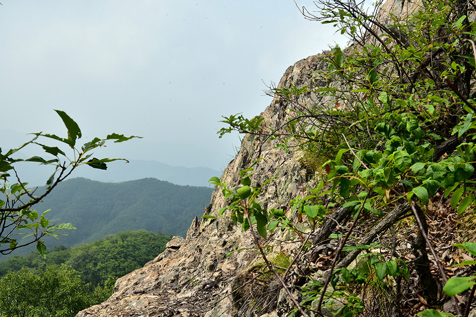 능선 곳곳에 바위가 튀어나와 있어 전망이 뛰어나며, 특히 절벽바위와 부부바위가 유명하다.