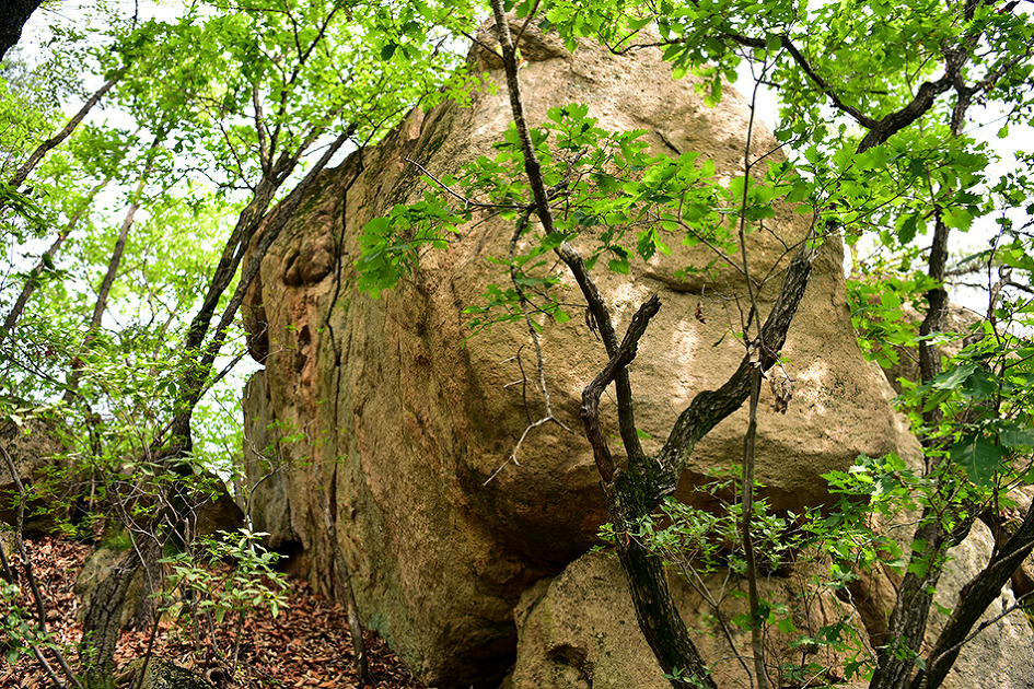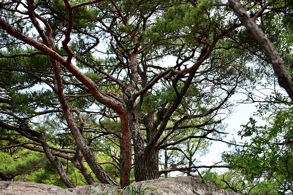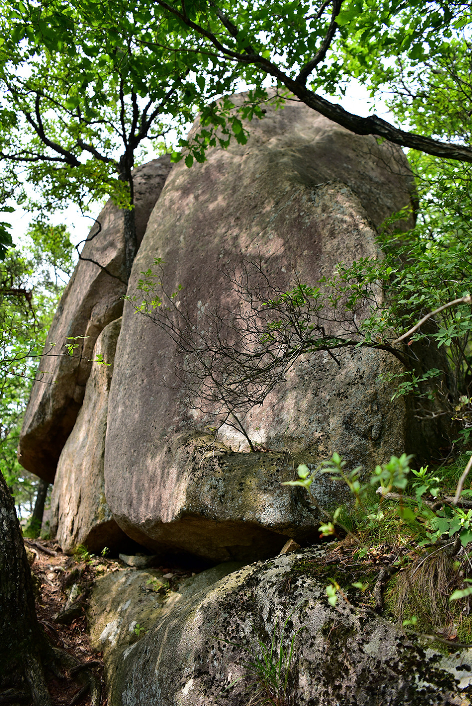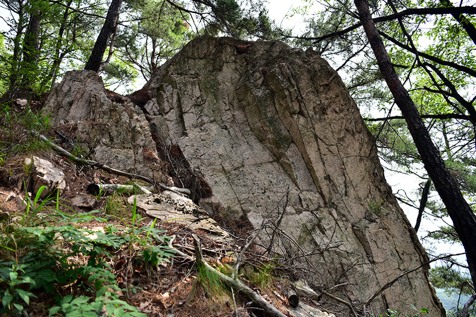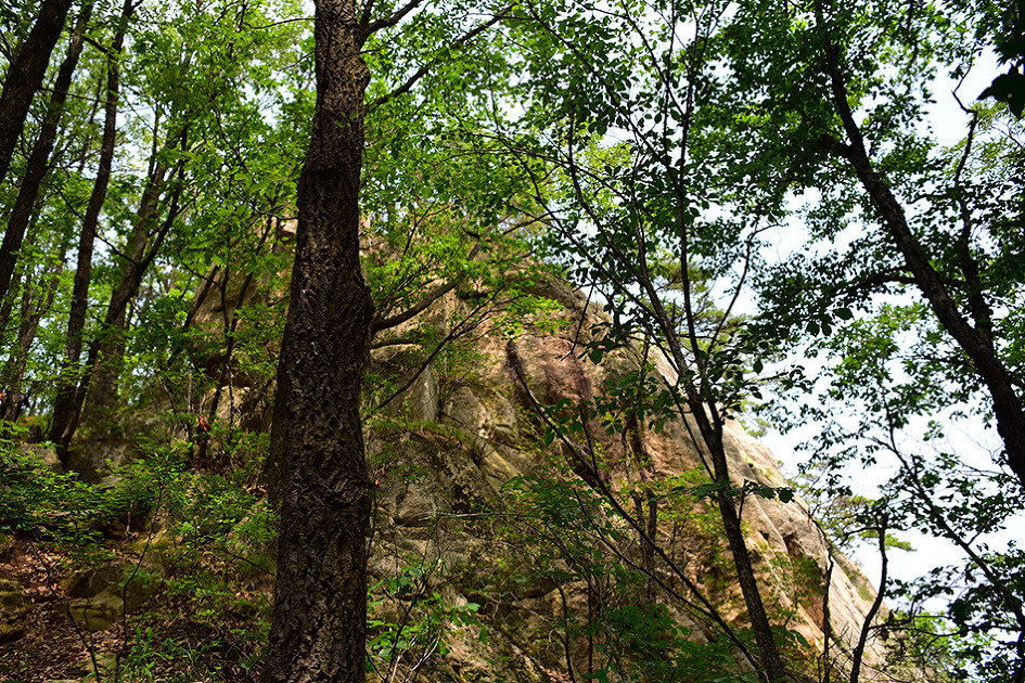 능선 곳곳에 바위가 튀어나와 있어 전망이 뛰어나며, 특히 절벽바위와 부부바위가 유명하다.