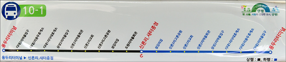 용두리 터미널에서 신론1리 샛터 종점까지 운행하는 10-1번 버스 운행도.