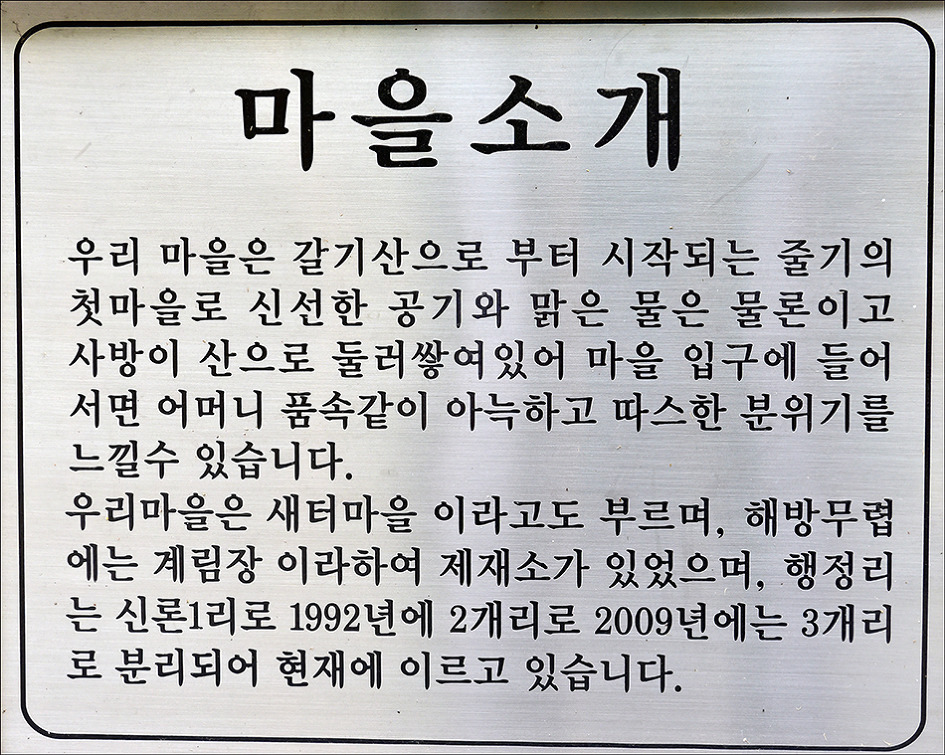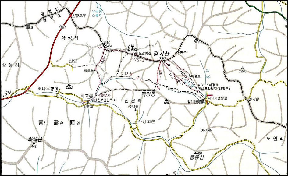 등산코스: 1. 신대마을 - 갈기산 (1시간 30분)