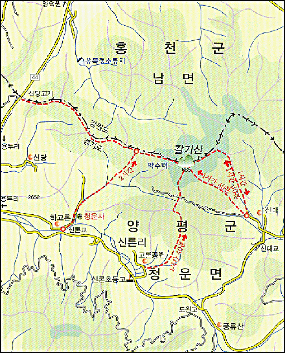 위치: 경기도 양평군 청운면, 강원도 홍천군 남면.