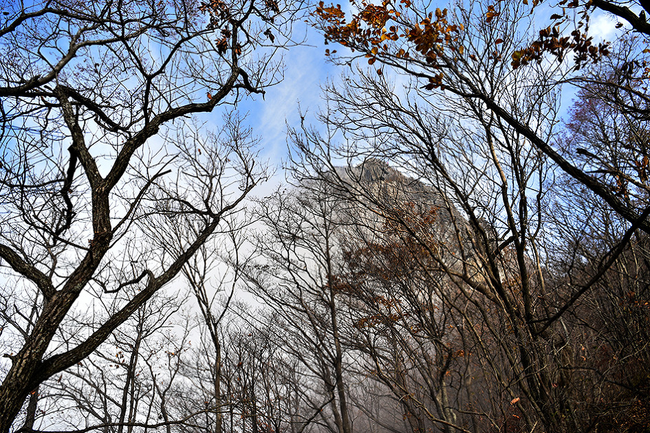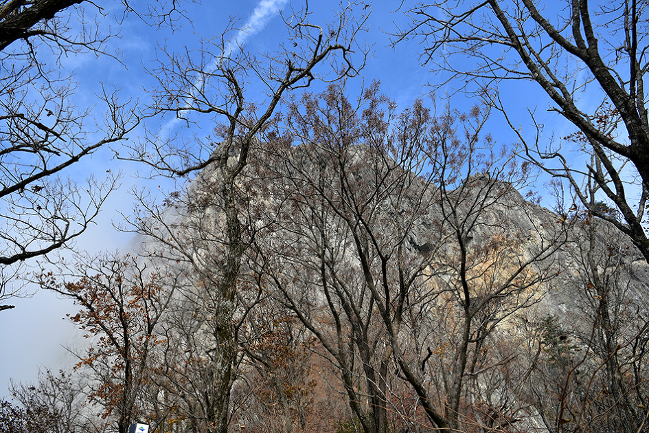정상부가 안개에 가려졌다.