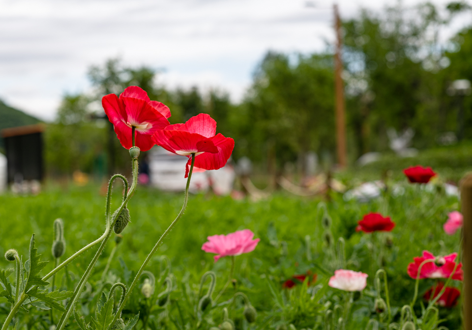 팬지, 양귀비, 유채, 수레국화, 구절초, 루피더스, 비올라 등 다양한 꽃들로 꾸몄다.