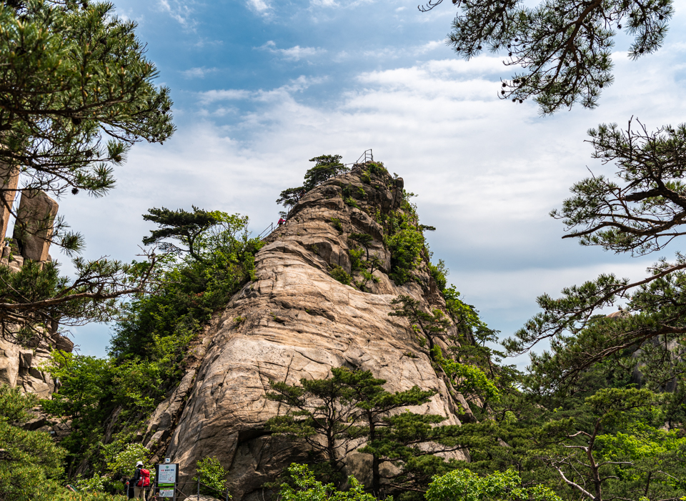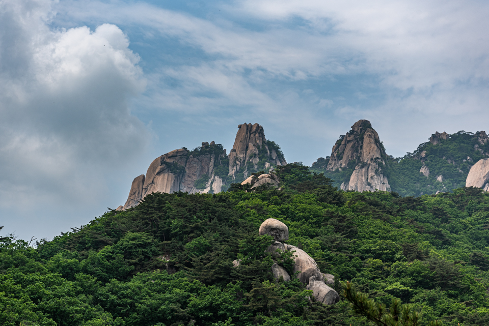 선인봉, 만장봉, 주봉, 우이암은 각기 거대한 암벽들이다.