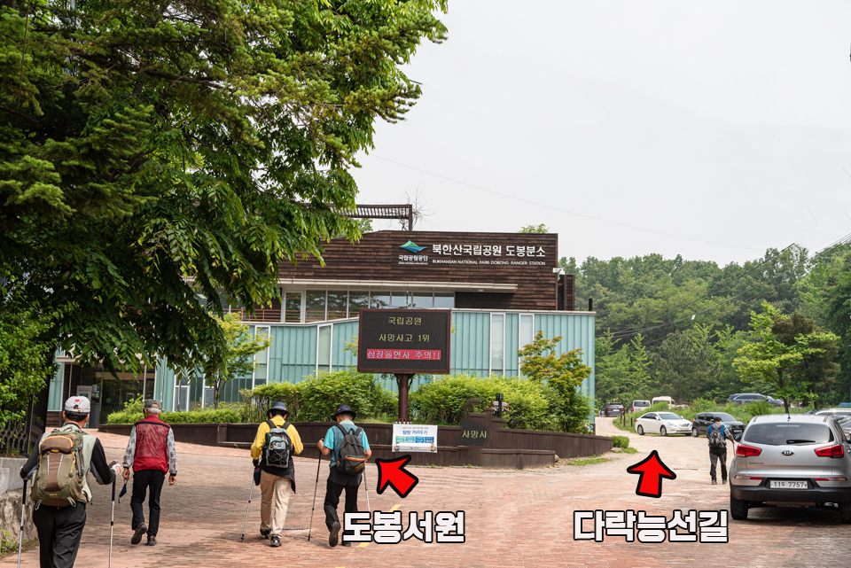 광륜사를 지나 도봉분소 앞에서 우측으로 다락원 방향으로 간다.